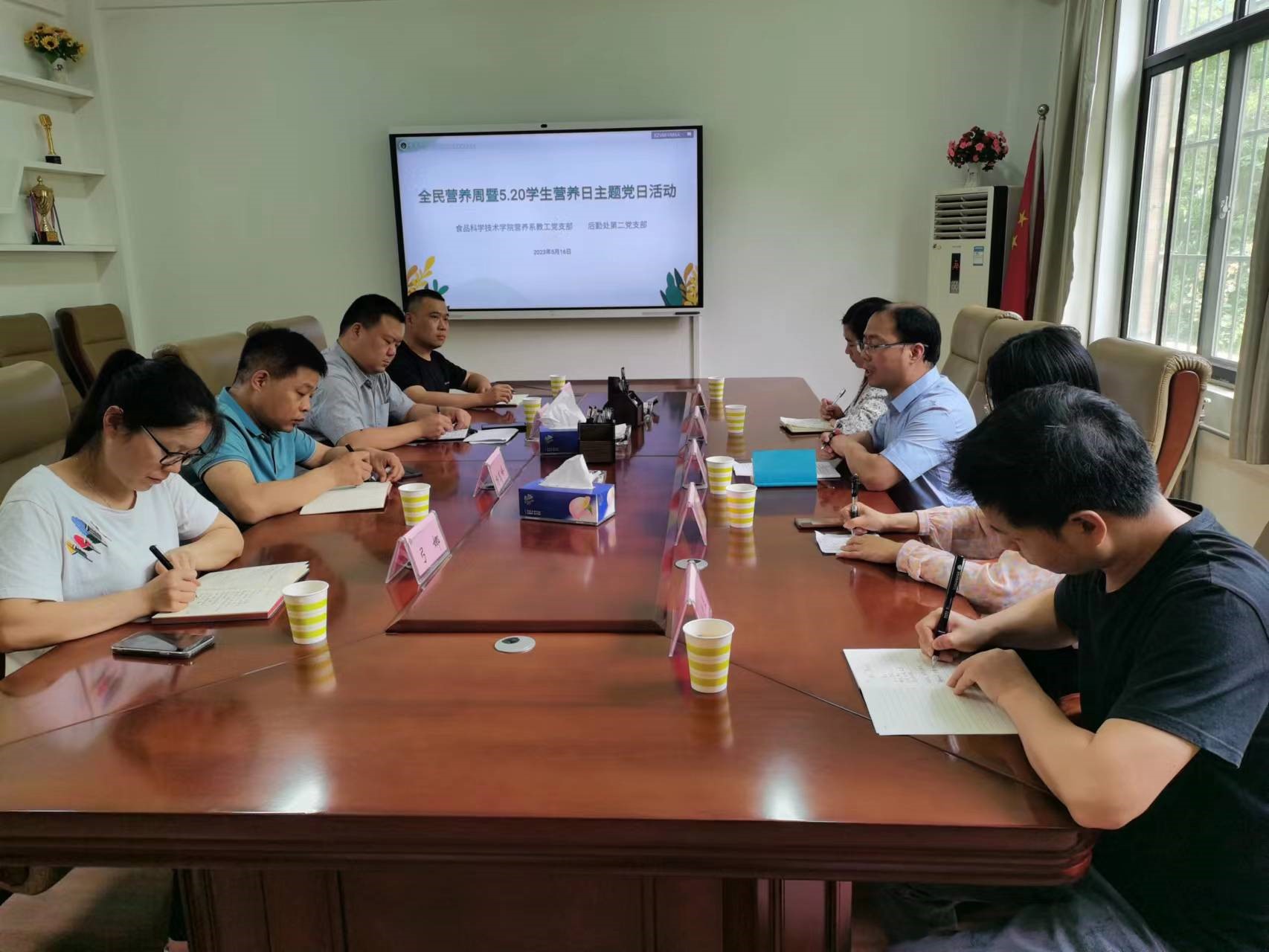 高晓平介绍了此行目的,一是向对口兄弟支部学习党建经验;二是向兄弟支部推介营养系教工党支部及食品营养与健康系,加深互相了解;三是经过前期对学生饮食习惯、饮食结构以及对饮食窗口建议开展了调研,现将调研结果反馈给伙食科;四是探索两个支部在食品营养与健康领域合作可能性,为农大高质量的餐饮品牌增光添彩。同时,交流了本周五准备在文化路校区开展2023全民营养周和5.20学生营养日活动暨第一届百合小说 营养知识健康行计划基本情况。