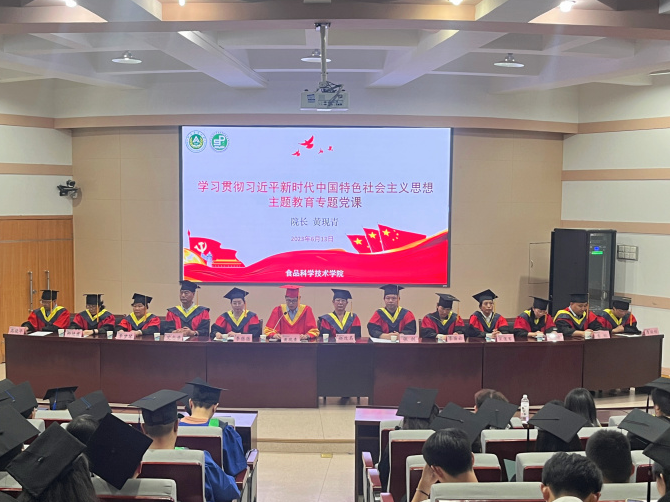 于文化路校区三百人报告厅开展第五期主题教育专题党课,院长黄现青担任主讲,院2023届全体本科、研究生毕业生参加会议。