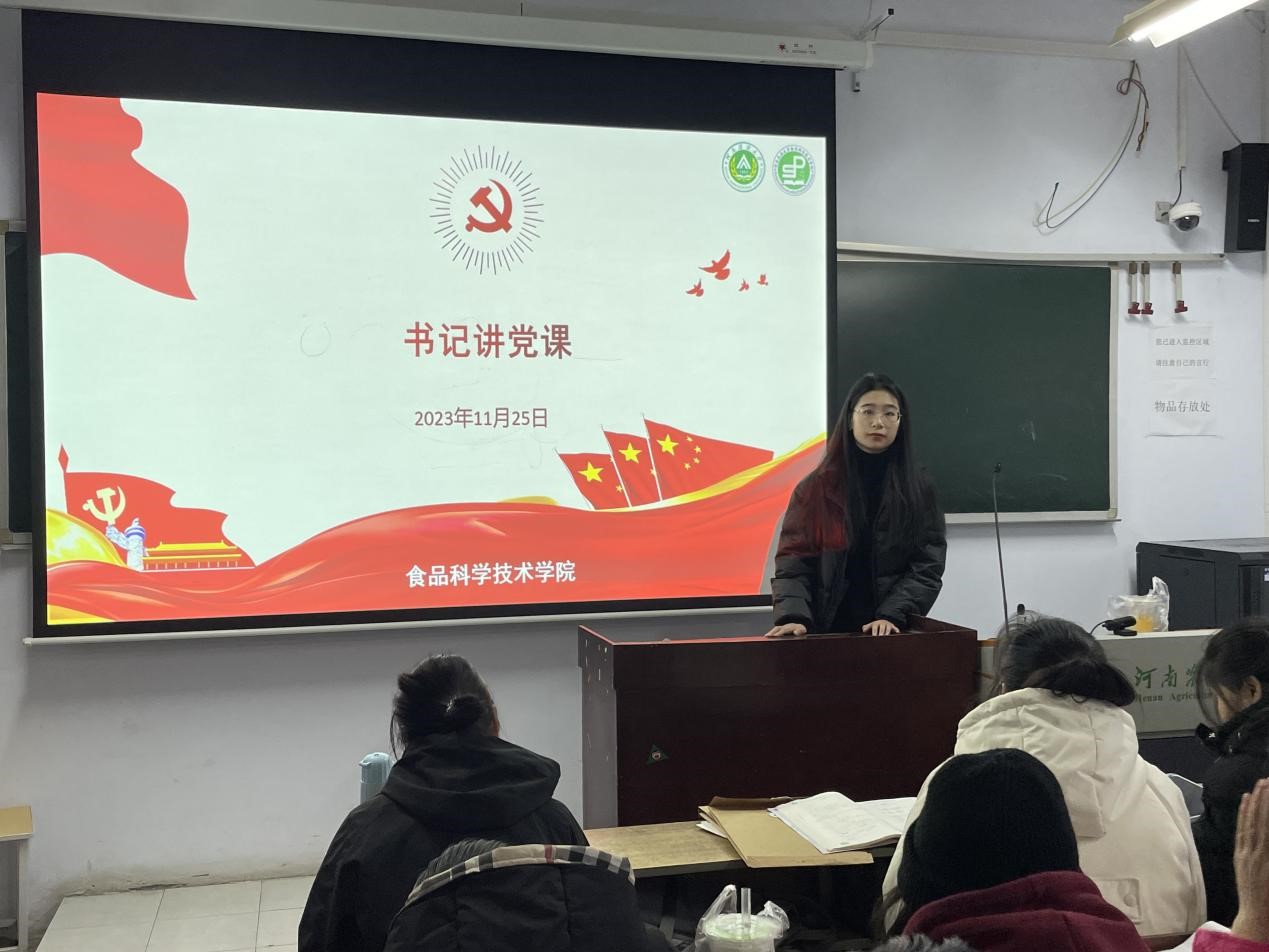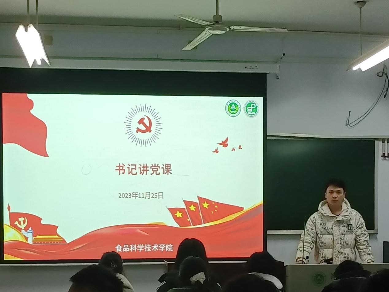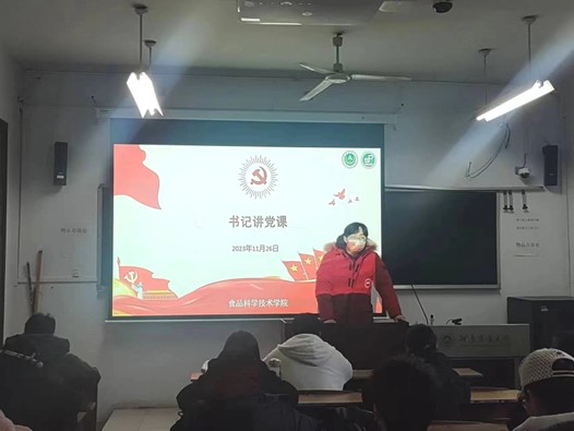 开展2023年下半年发展对象培训暨“第三期书记讲党课”活动,速冻研究生党支部书记邢文帅作了主题为《践行“四讲四有”,做合格党员》的报告。他从三个方面为同学们详细介绍了“四讲四有”的内涵,结合实际提出要如何做到四讲四有,还从总书记对党员的要求中剖析出做一个合格党员的要求。激励同学们努力切实“四讲四有”,努力向党组织靠拢。