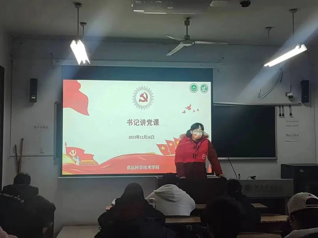 12月28日下午,食工系教工党支部书记柳艳霞作了主题为《牢记嘱托砥砺奋进 做有担当的食品人》的报告。她强调,当代青年要推动中华优秀传统文化创造性转化、创新性发展,把跨越时空、超越国度、富有永恒魅力、具有当代价值的文化精神弘扬起来,把继承优秀传统文化又弘扬时代精神、立足本国又面向世界的当代中国文化创新成果传播出去。同时,她希望同学们传承传统食品文化,推动食品行业科技创新,满足个性化需求,让食品实现绿色化制造和智能化制造。