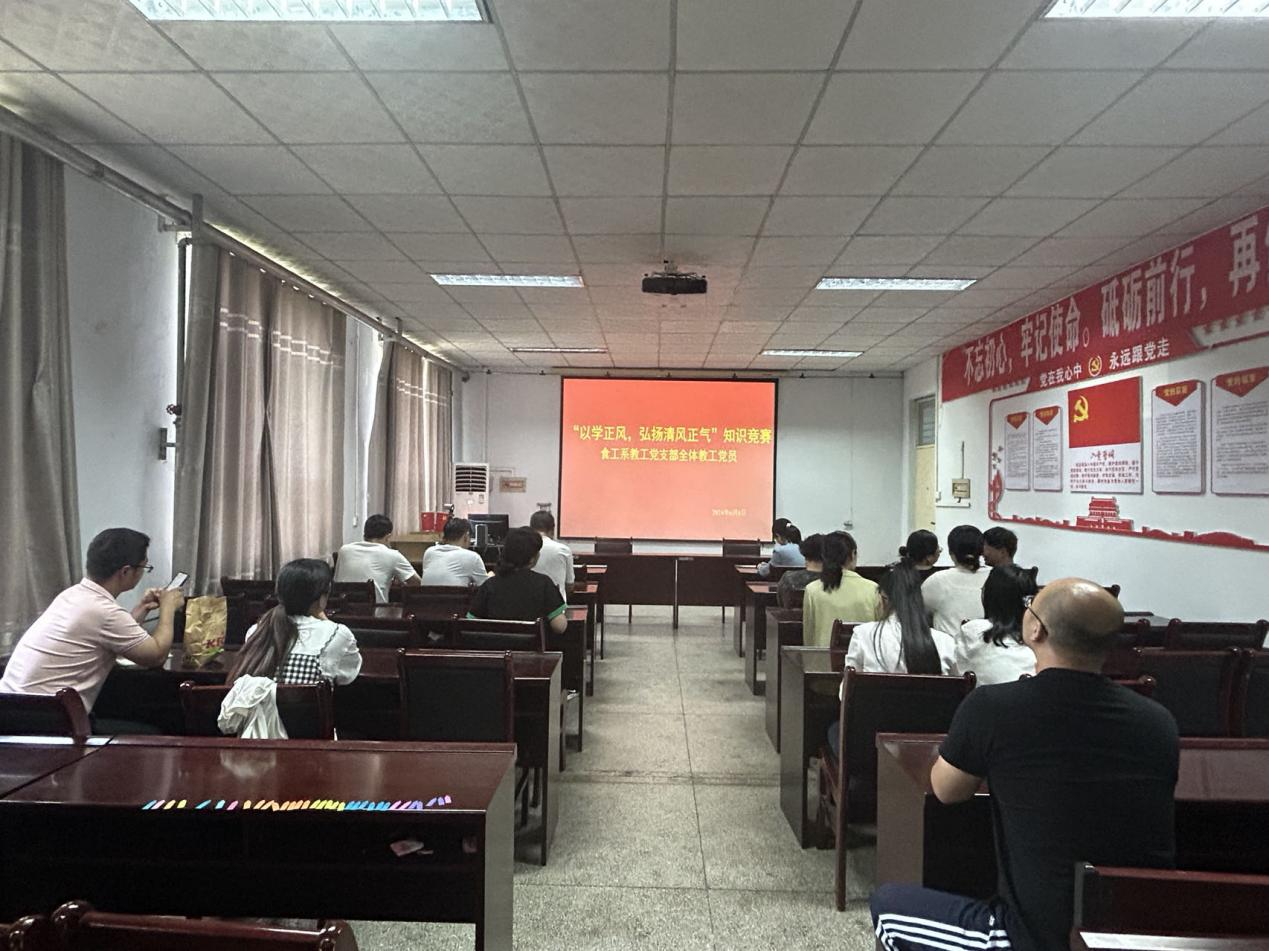 食工系教工党支部高度重视“以学正风,弘扬清风正气”知识竞赛活动,柳艳霞支部书记宣讲了竞赛活动相关事宜。活动期间,党员同志们热情高涨,积极踊跃,认真作答,达到了“以赛促学”,提升党员自我修养与认知的能力。