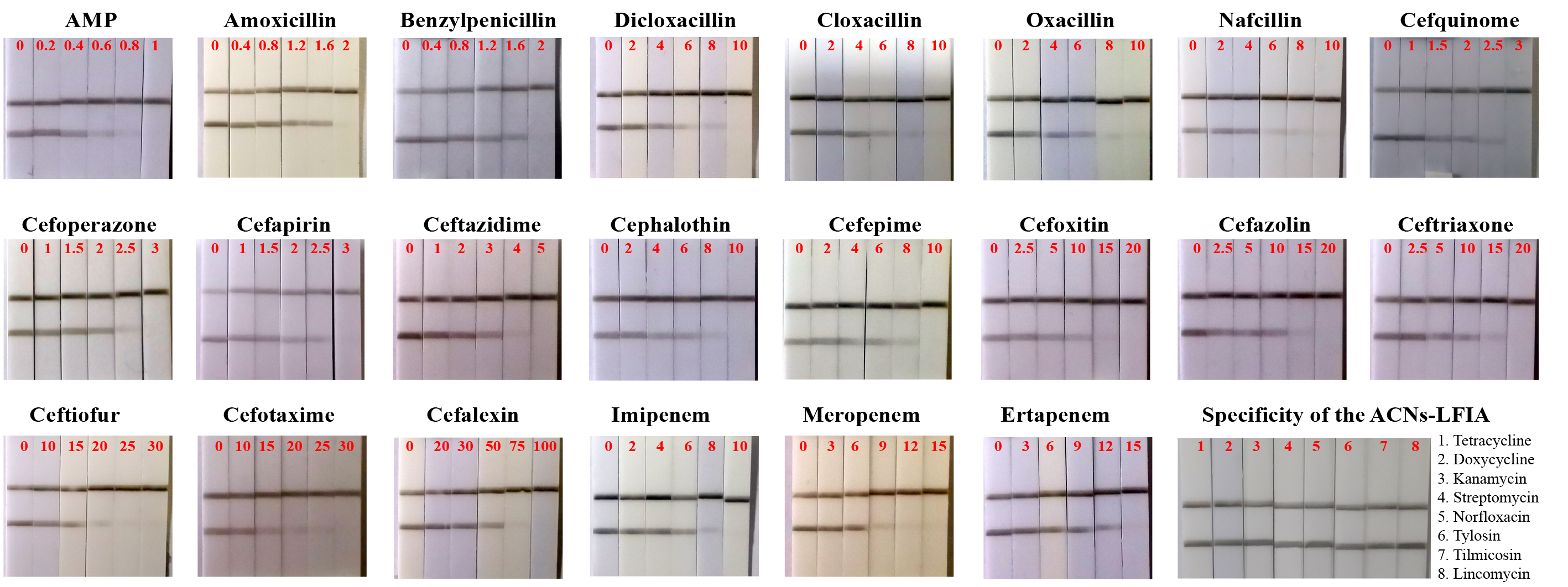 牛奶中22种β-内酰胺药物检测胶体碳试纸条