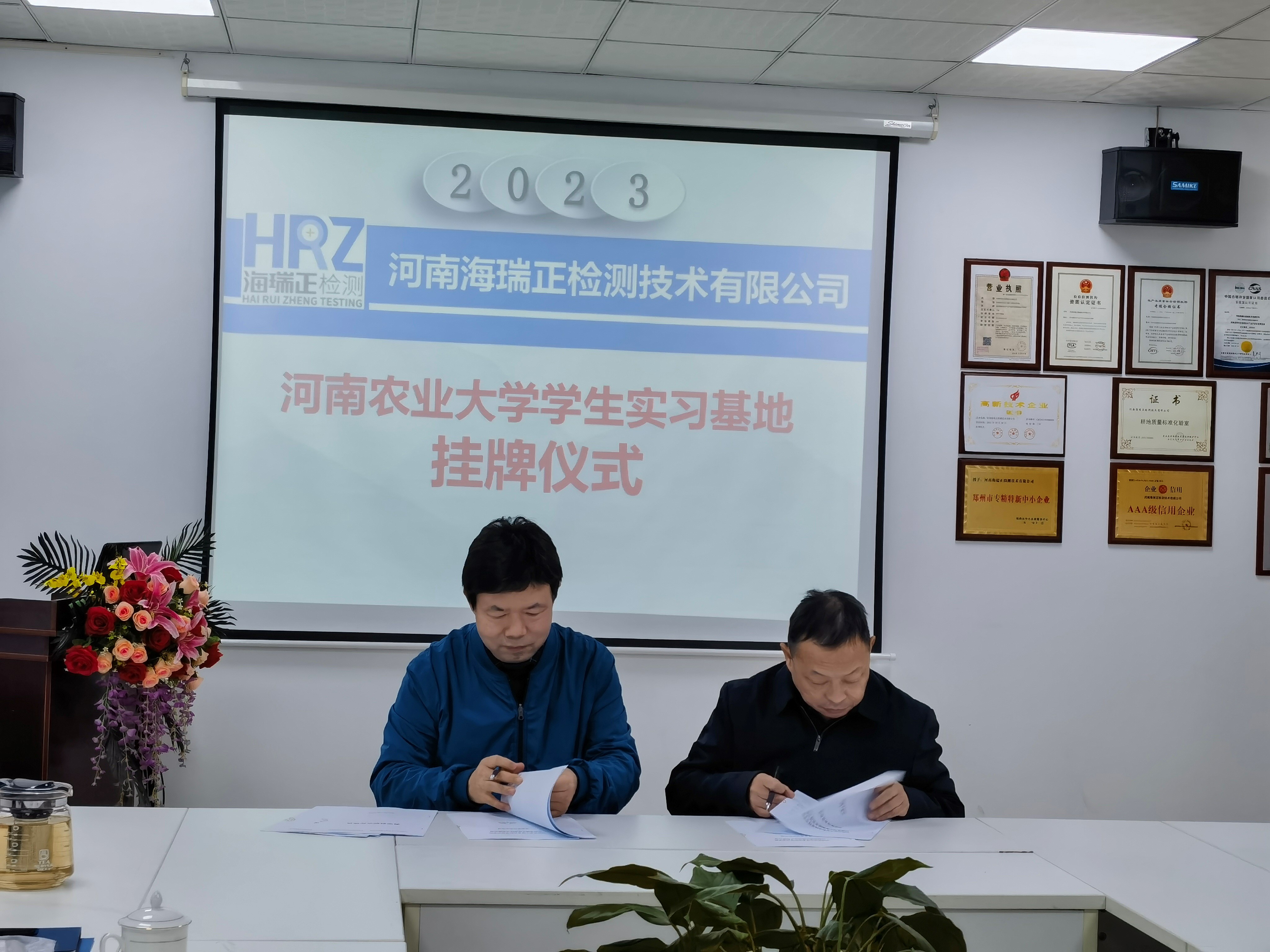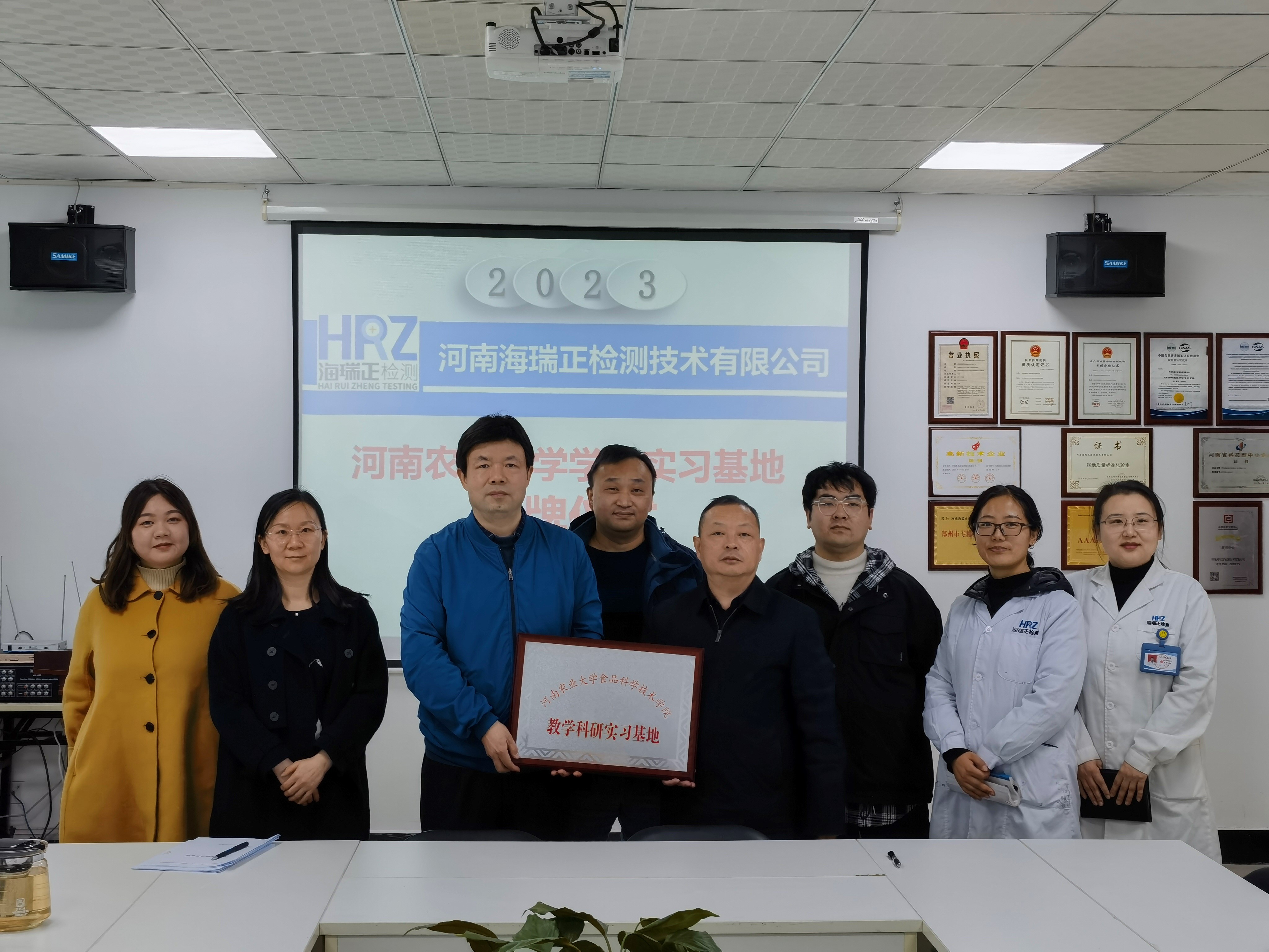 、河南海瑞正检测技术有限公司共建教学科研实习基地授牌仪式在河南海瑞正检测技术有限公司举行。海瑞正检测技术有限公司董事长兰尊海、副总经理兰剑、副总经理李贤、检测中心主任赵景丽、人事部负责人张向辉等及百合小说