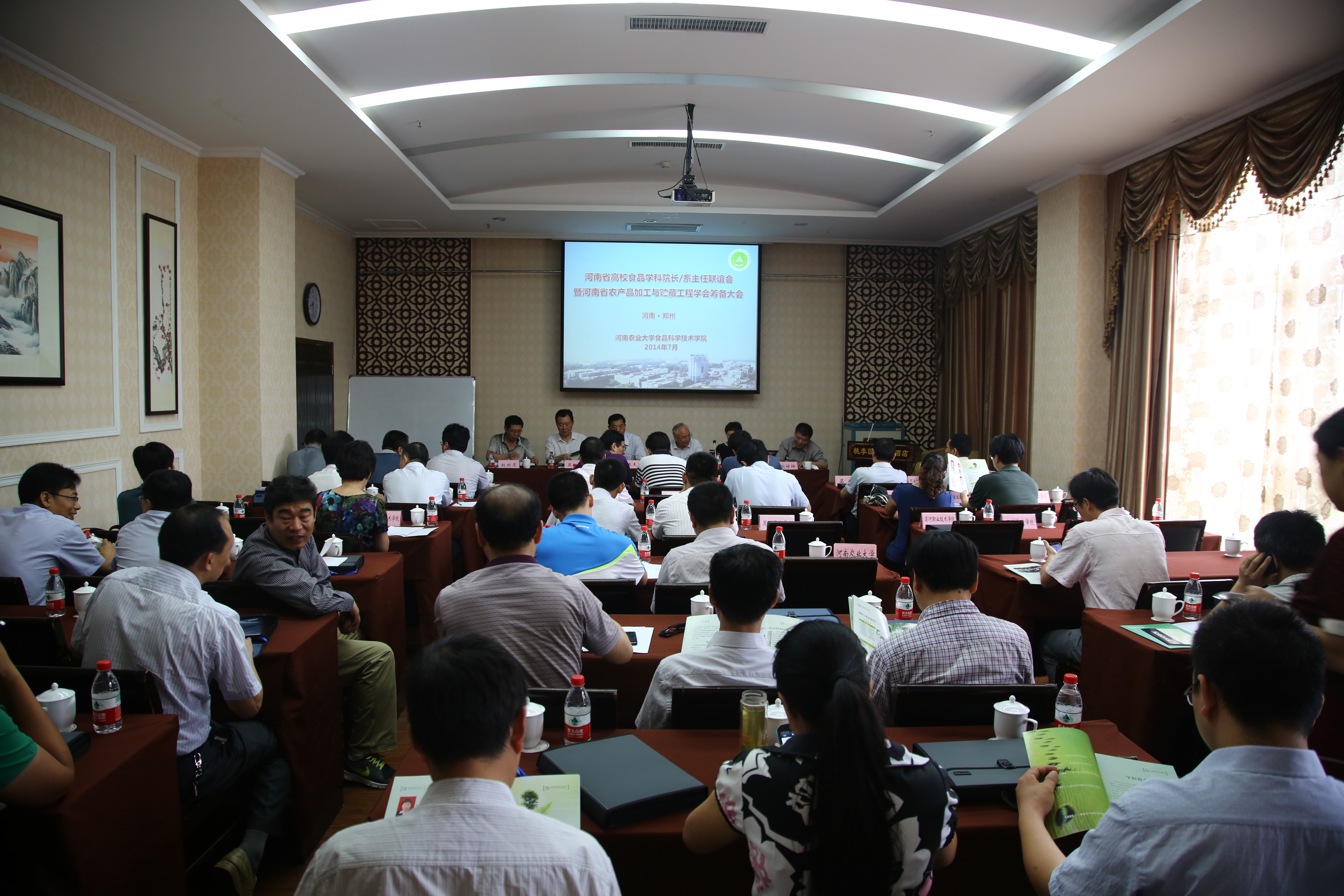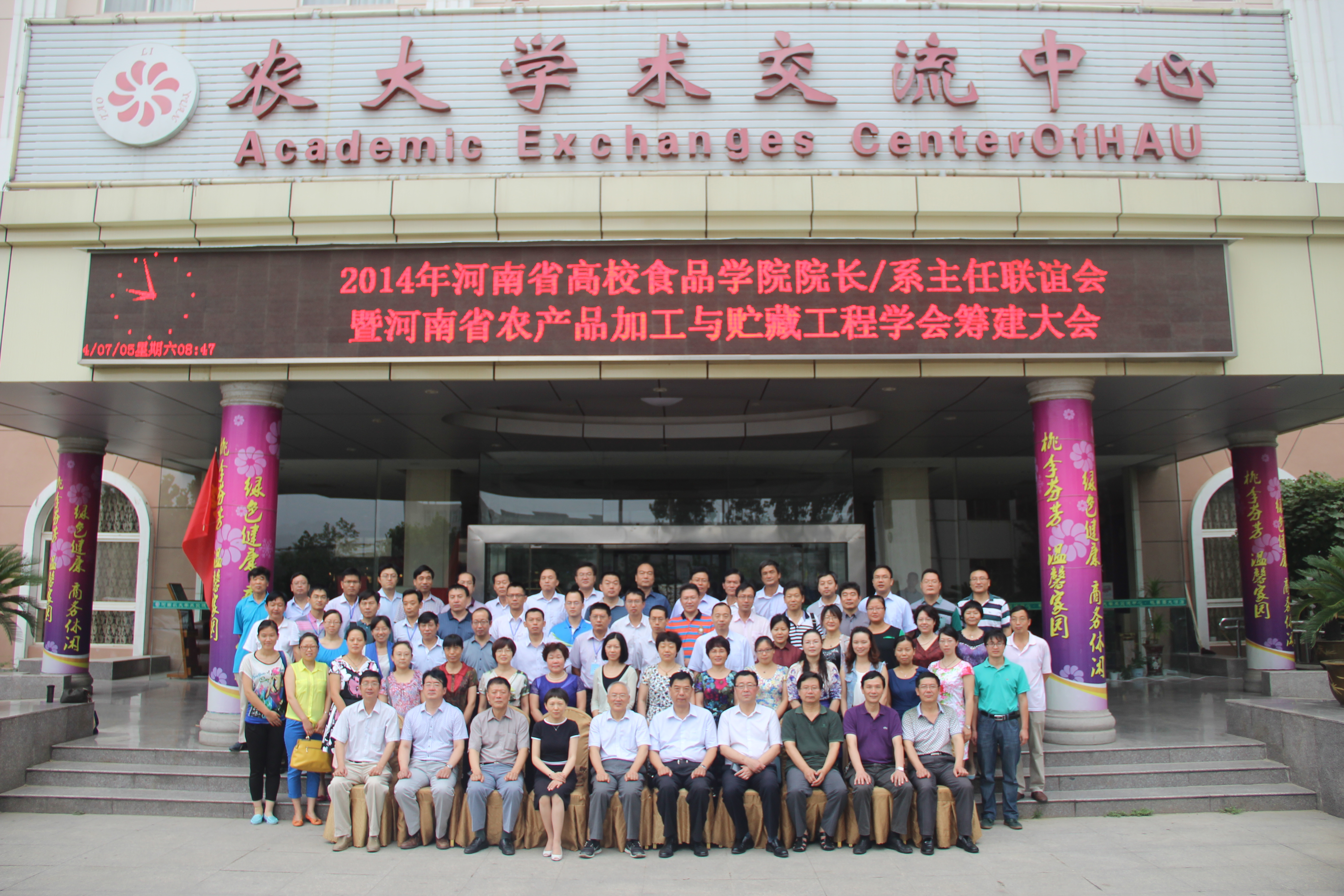 7月4-5日,河南省高校食品学科院长/系主任联谊会暨河南省农产品加工与贮藏工程学会筹备大会在我校桃李园大酒店召开。河南省工信厅总工陈振杰高工,河南省食安办监察处处长吴祖兴教授,河南省食品科学技术学会会长沈祥坤高工,我校副校长谭金芳教授及来自全省25所院校的食品学科院长(主任)和专家参加了会议。