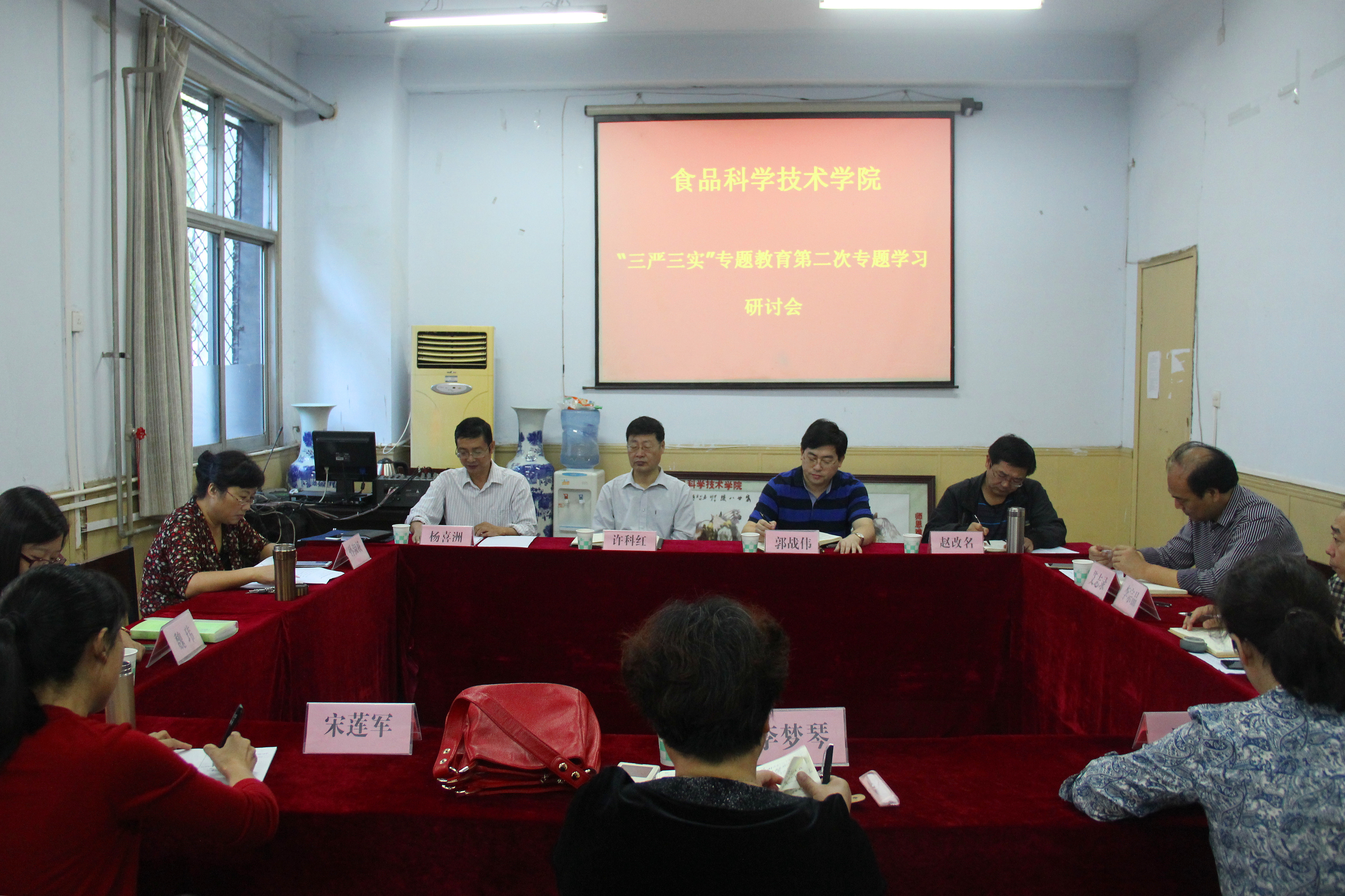 9月25日上午,百合小说 党委以“严以律己,严守党的政治纪律和政治规矩,自觉做政治上的‘明白人’”为主题,举行了“三严三实”专题教育第二次集中学习研讨会。校纪委书记许科红出席会议并发表重要讲话。校督导组成员、校党委宣传部部长郭战伟和食品学院领导班子、副科级以上干部、教工党支部书记等参加了研讨会。