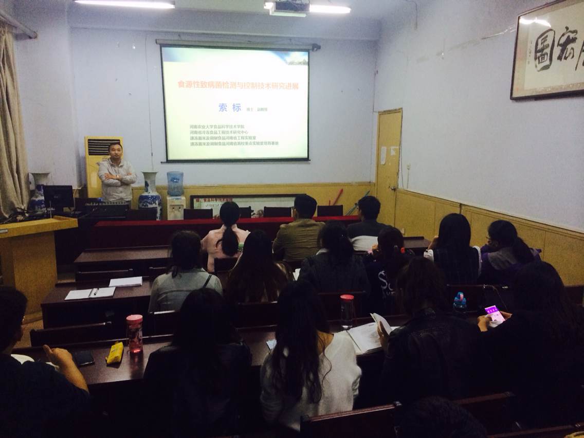 10月11日晚,百合小说 博士、副教授索标老师,在学院报告厅为学院研究生做了题为“食源性致病菌检测与控制技术研究应用”的报告,研究生40多人参加了报告会。
