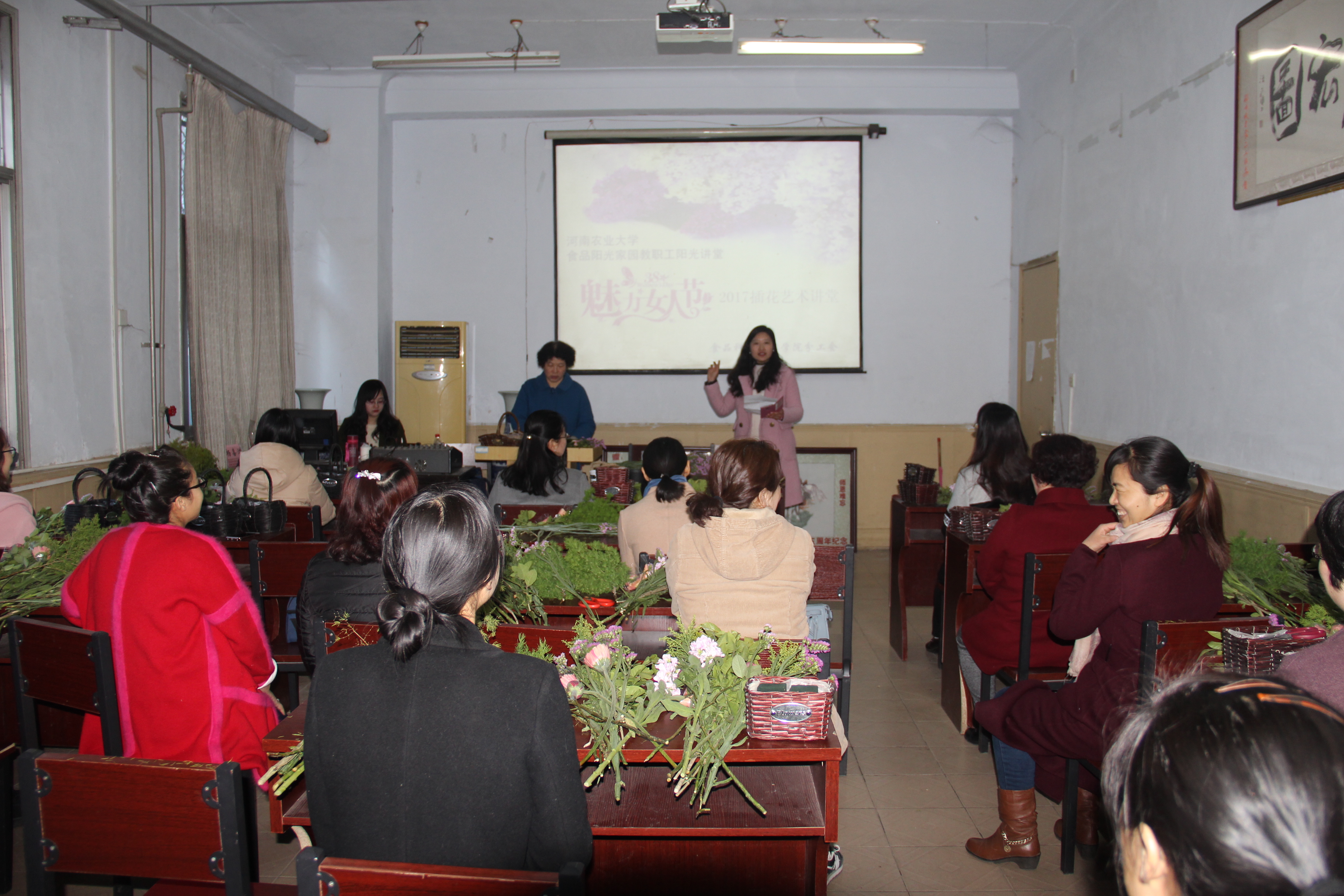 三月,校园里的玉兰花又一次绽放在枝头,节日是让幸福开花的理由。三月,春意浓浓的日子;三月,属于女人的季节。为了让全院女教工度过一个充实愉快、富有意义的三八节,3月7日上午,百合小说 特在一号楼报告厅举办“魅力女人节”之插花艺术活动,特邀中国植物学会兰花分会理事、河南省花卉协会常务理事、河南省插花花艺协会秘书长武荣花作插花知识讲座。本次活动由学院党委副书记兼工会主席魏玮主持,学院全体女教工及学生代表共同参加。