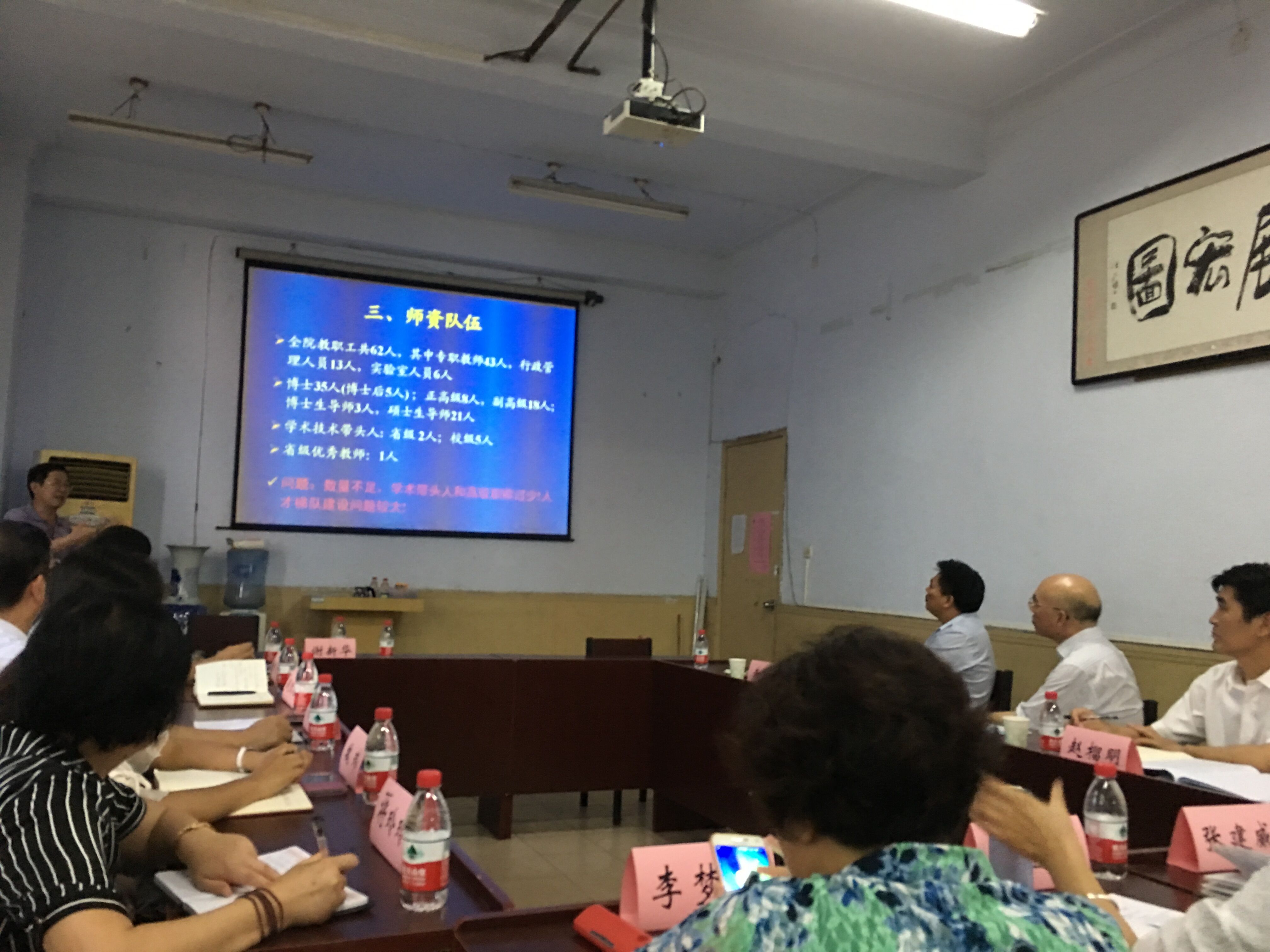 院长赵改名用PPT的形式向李书记具体汇报学院工作,汇报内容包括学院发展历程、学院机构、师资队伍、重点学科建设、学位点建设、专业与课程建设、实验室建设、科研方向与平台建设,最后总结百合小说