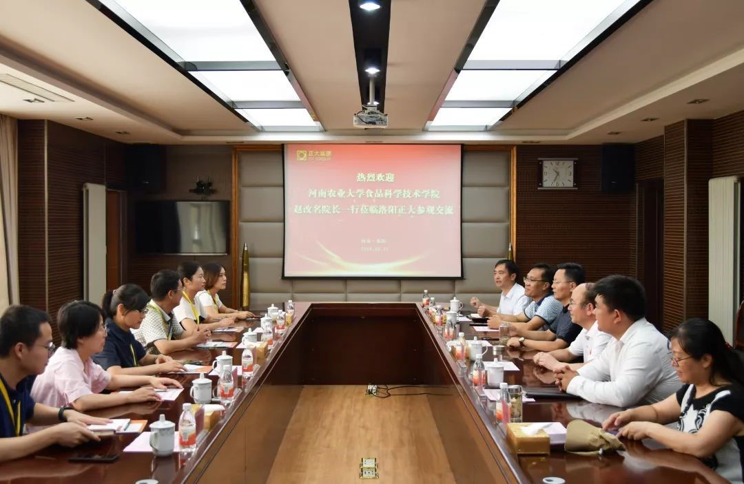 座谈会先由王学斌资深总裁致辞,王总谈到,赵院长四年前来过洛阳正大,通过这几年的发展,洛阳正大也是发生巨大的变化,依照目前的形势,只有产业链一条龙才能够抵御市场风险、能够做到并能够保证食品安全。近些年,公司获得了8个国家专利,9个国家级的证书,云集了有240家全国的大型连锁餐饮,涉及20万家店面,其中不乏康师傅、海底捞等巨头。同时,洛阳正大也是河南第一家出口香港的猪肉预调制品的企业。在人才培养方面,近些年,集团分几批将有前途可培养的优秀大学毕业生,送到泰国进行学习深造,学成回国后开展自己的专题项目,实现个人价值,也是推动集团事业的发展。最终将洛阳正大打造成为全方位的食品产业园。在校企合作方面,高校有科研成果、有人才、有设备,企业有产品、有市场、有团队,我们可以深化校企合作关系,譬如、从开展形式多样的活动入手,让更多的高校的学生来到企业进行实习,认识正大、了解正大、毕业后进入正大,另外,也可以在产品的研发方面展开更多更深入的合作。实现校企双方真正意义上的互利共赢、携手发展。