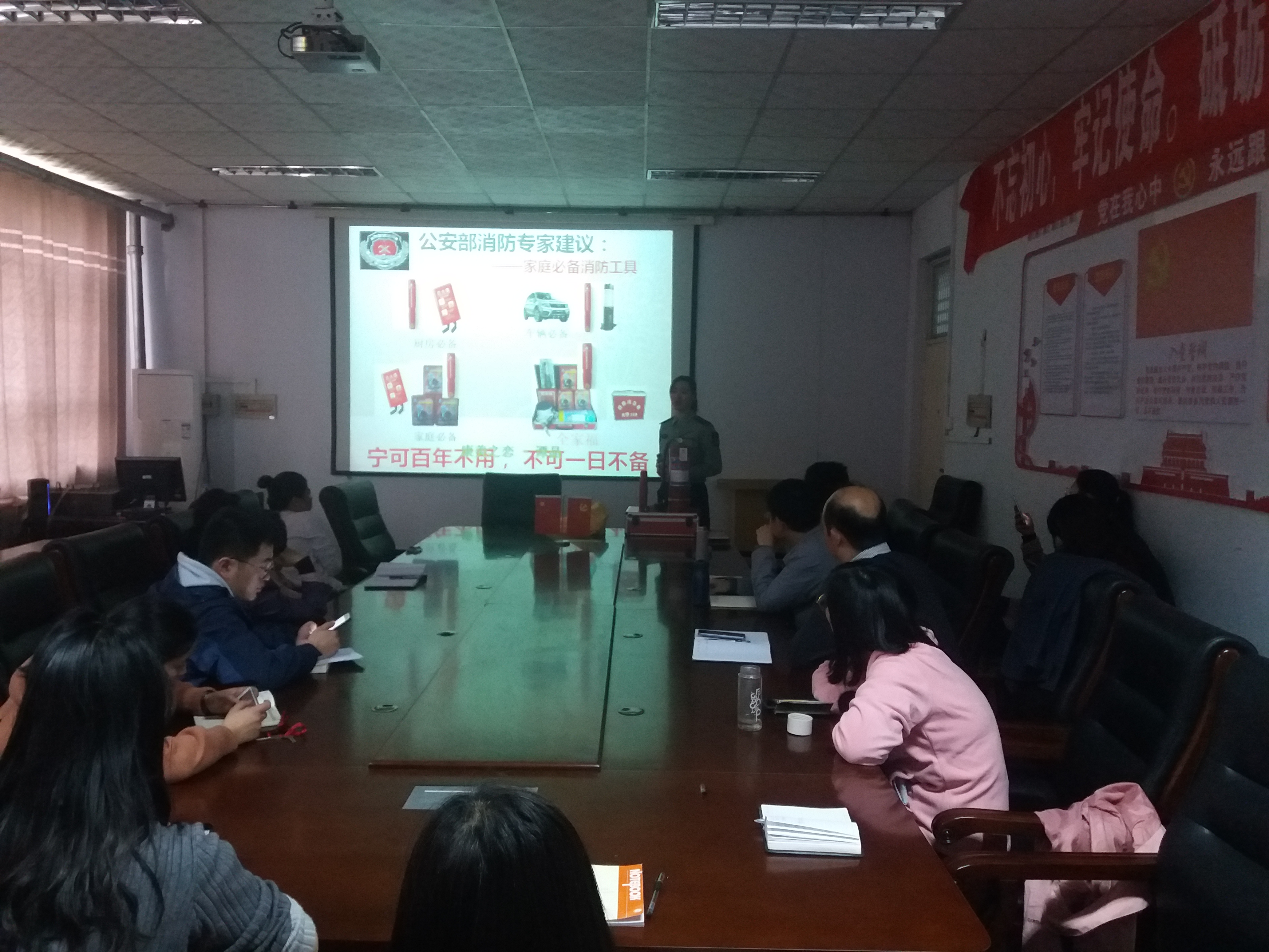 讲座上,李教官从火灾的严重后果讲起,从单位工作人员需“四懂”“四会”、火灾分类、常用灭火方法、灭火器分类、灭火器使用等方面详细讲解了消防安全知识和灭火逃生技能。李教官结合汽车火灾实际案例,提醒大家提高消防安全意识,在消防安全问题上不能抱有侥幸心理,水火无情,千万不能麻痹大意。李教官还现场演示了警用灭火器、干粉灭火器、逃生锤等消防器材的使用方法。