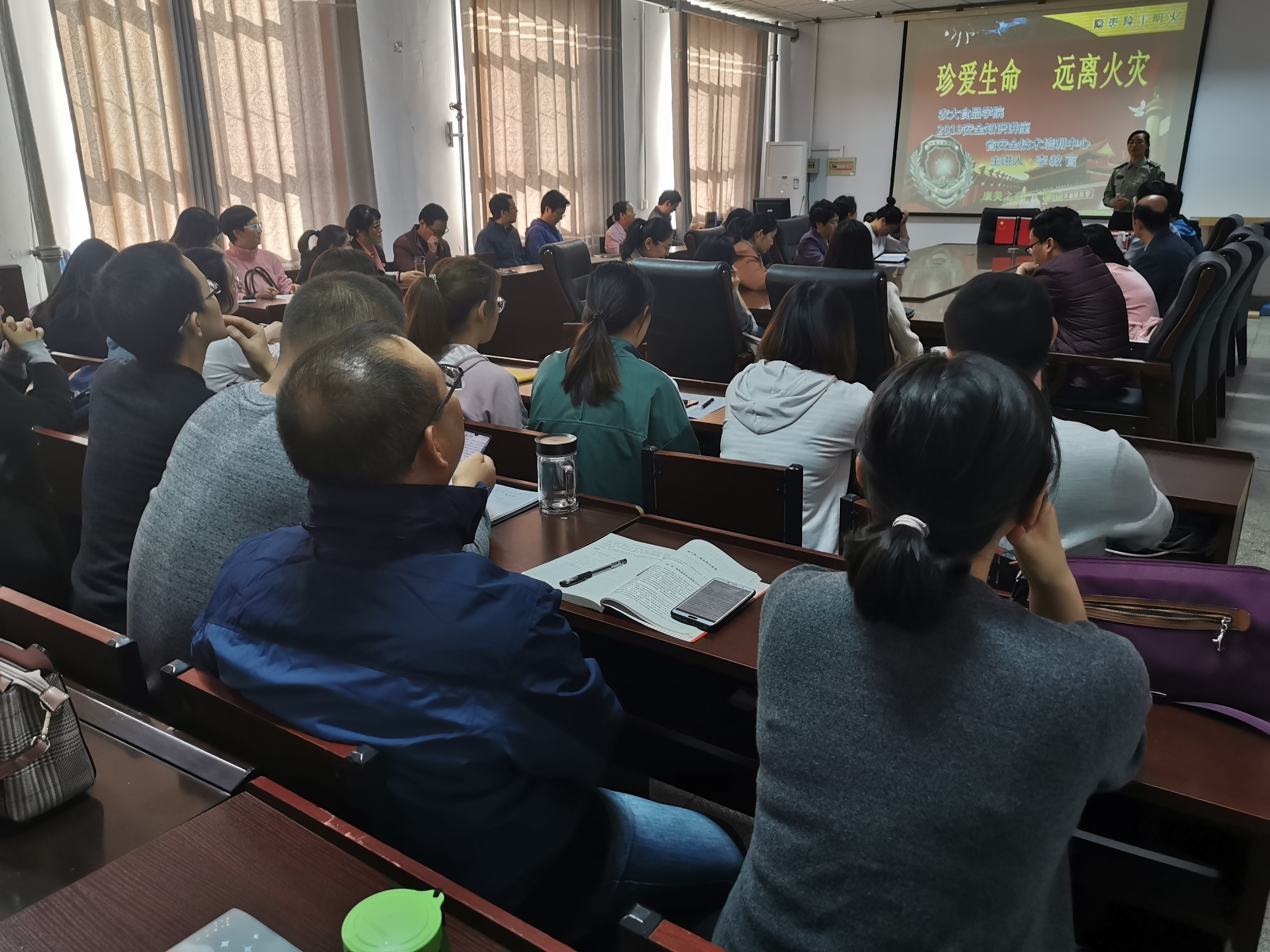 11月12日下午,学院邀请省安全技术培训中心李果教官在17号楼405为百合小说 全体教工和部分研究生代表60多人进行了题为《珍爱生命 远离火灾》的消防安全教育讲座。