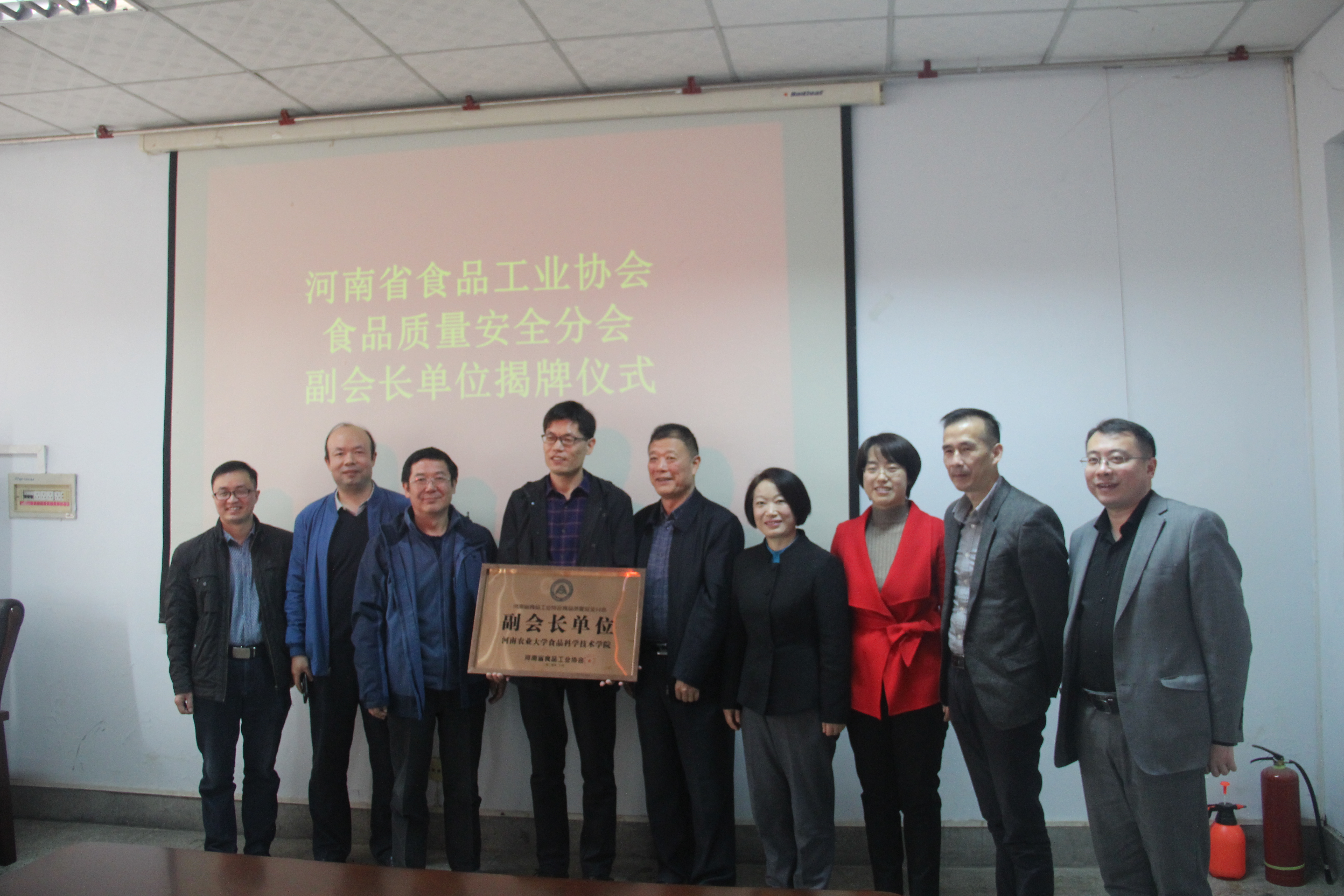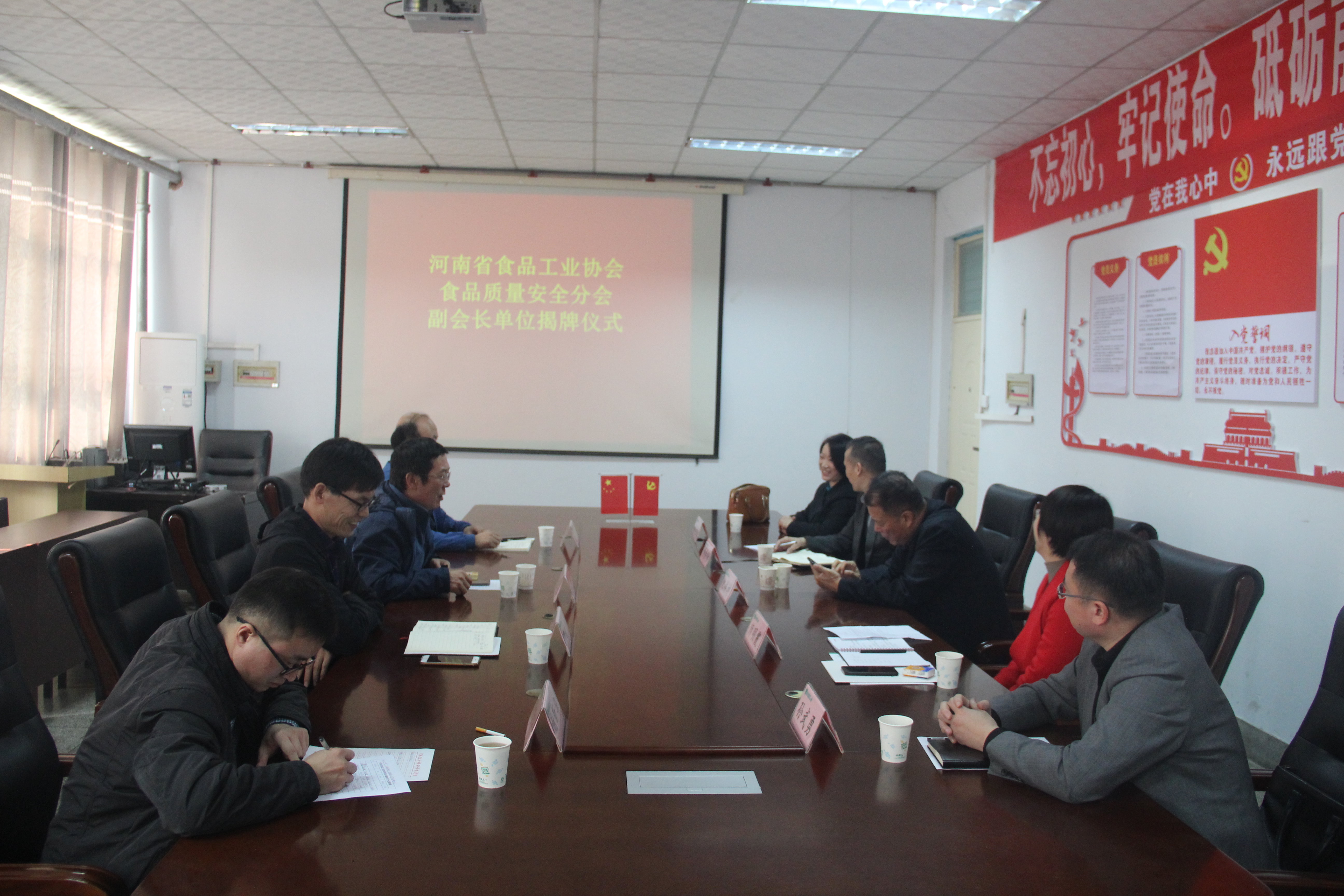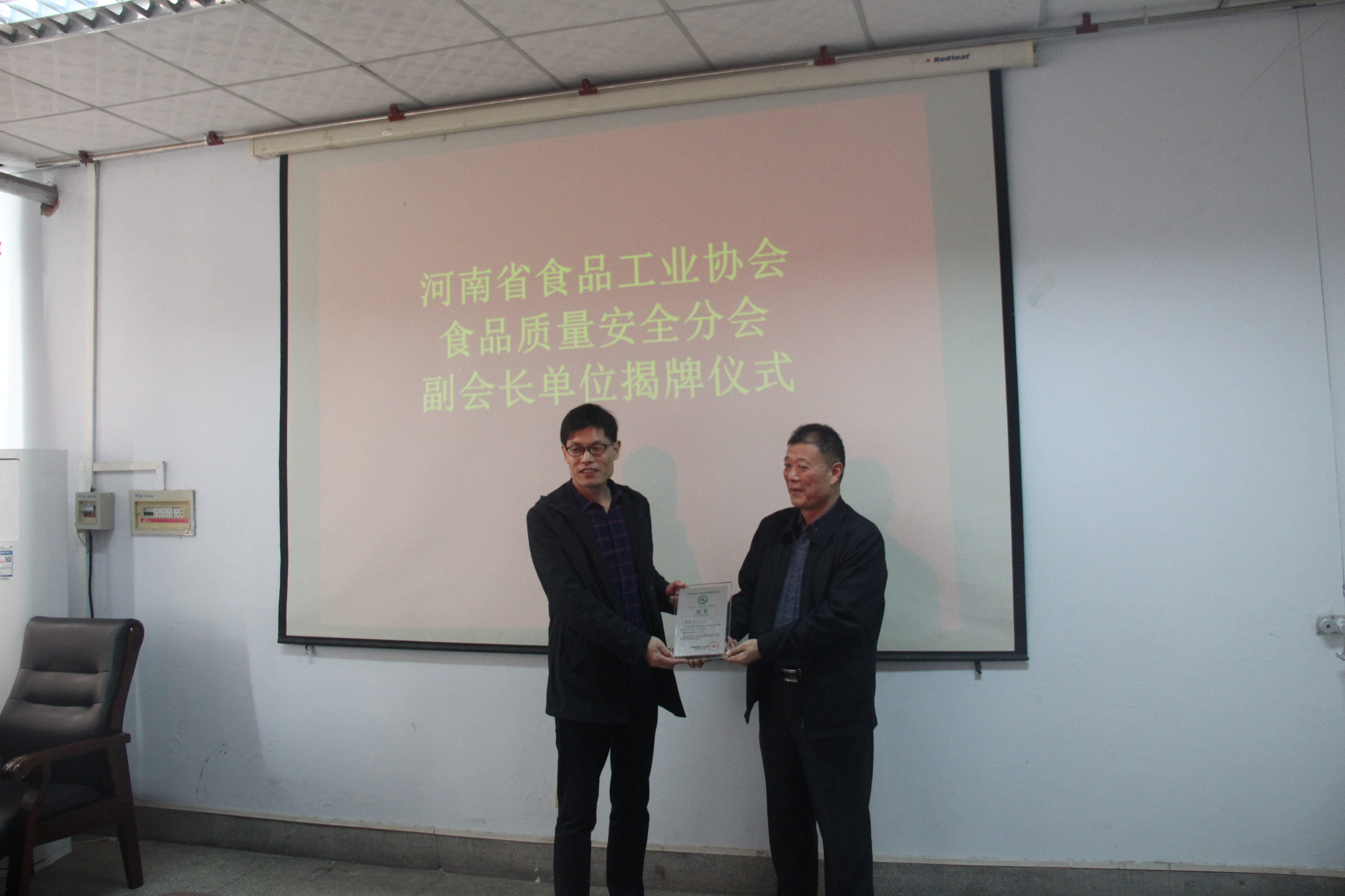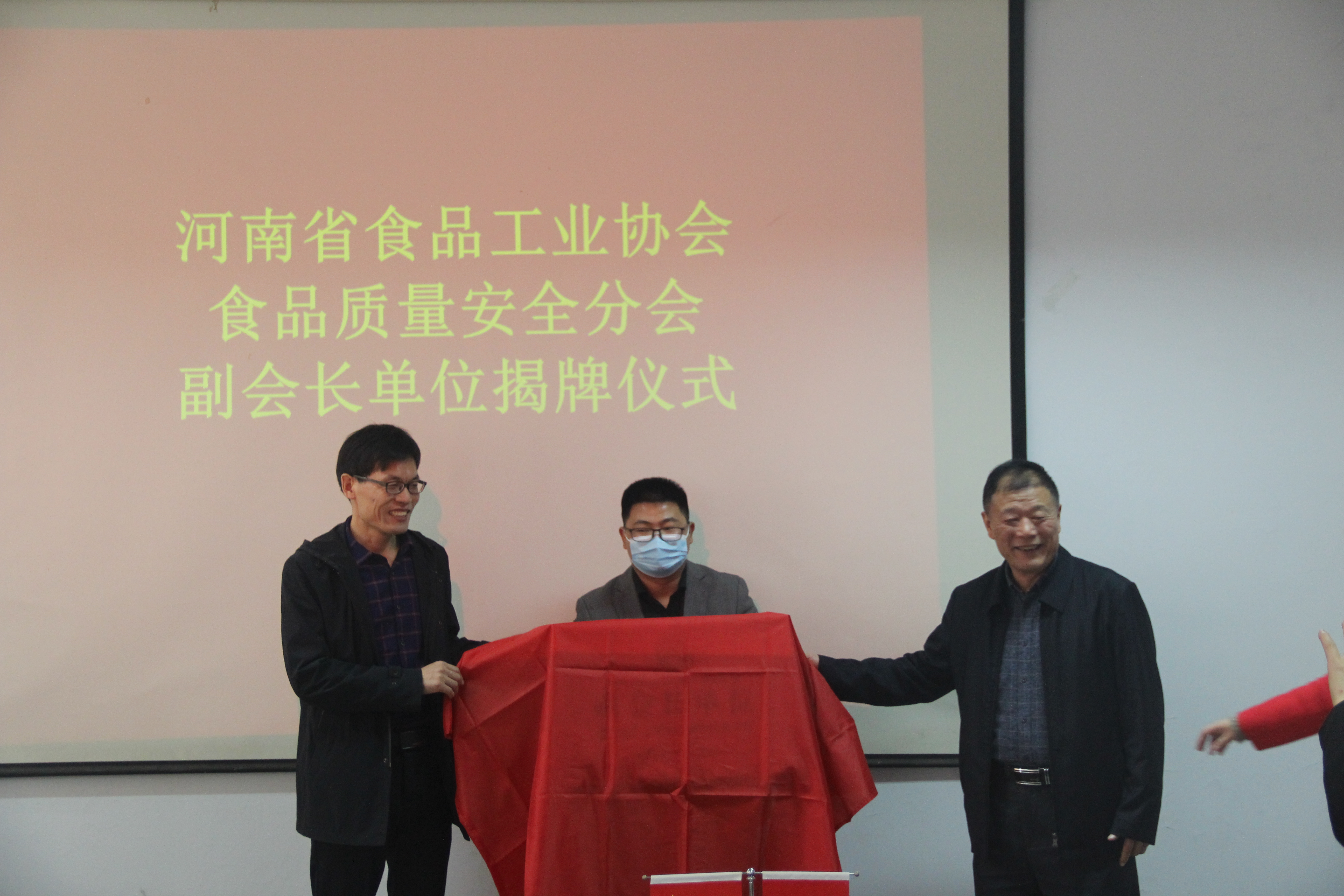 在报告厅隆重举行河南省食品工业协会食品质量安全分会副会长单位揭牌仪式。河南省食品工业协会食品质量安全分会会长沈详坤、秘书长师明霞、侯勇刚主任、孙勇武主任、谢岩黎教授和百合小说