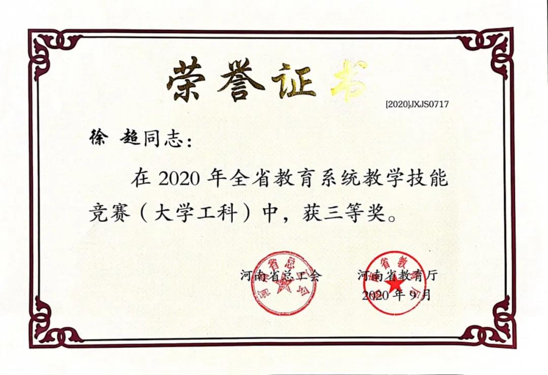 教师徐超获得高校工科组三等奖的好成绩。