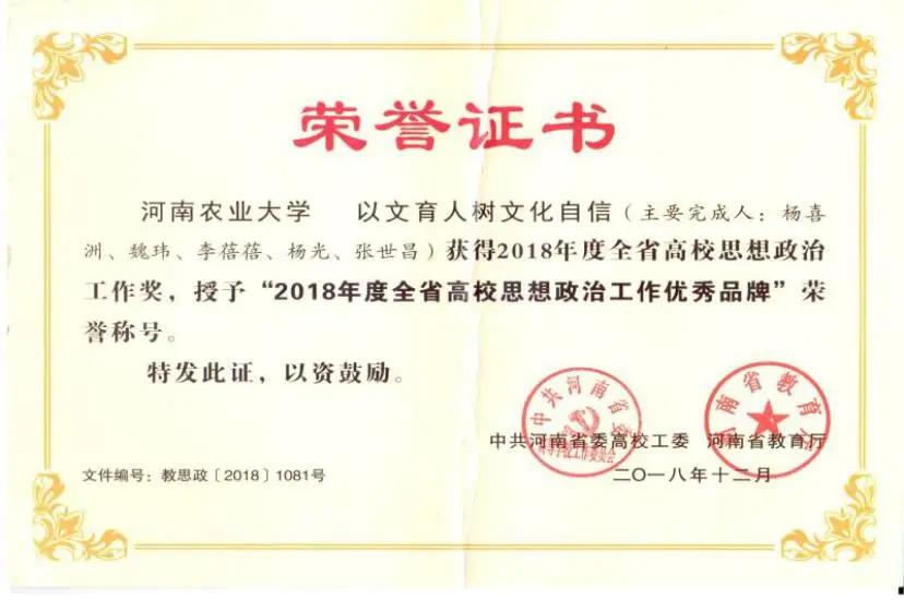 “食品阳光家园”育人工程荣获河南省普通高等学校2020年学生工作优秀成果二等奖。 此次活动经各高校推荐后,再由省教育厅组织专家进行评审,经过专家遴选、表彰展演的层层筛选,百合小说