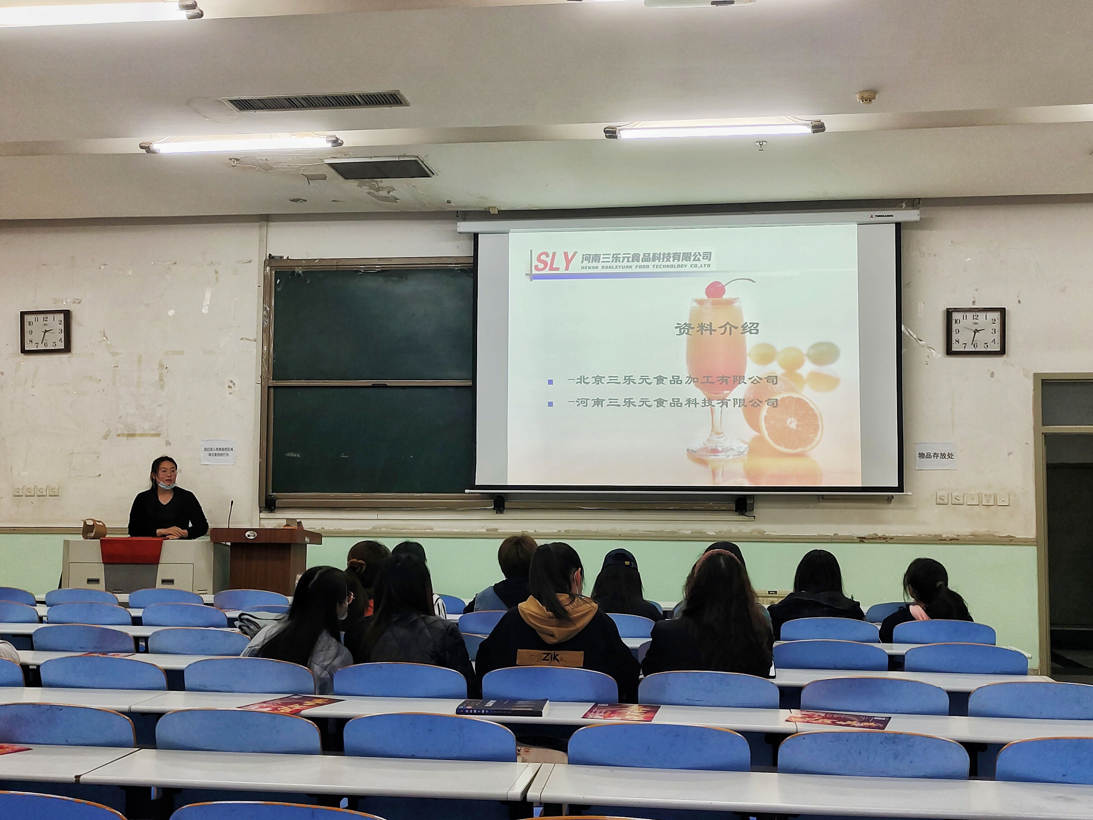河南三乐元食品科技有限公司,是由北京三乐元食品加工有限公司投资兴建,主要生产酸奶、冰品、糖果等七大系列果酱产品及水果、蔬菜深加工产品。公司负责人向毕业生们介绍了公司质量管理体系、目标领域及果酱产品,她表示,河南三乐元食品科技有限公司已与多个知名食品企业建立合作关系,这充分展现了公司的发展实力与核心竞争力。她详细地讲述了三乐元有限公司拥有创新产品定期推出、新资源原料、先进器械等多个优势,帮助同学们进一步走进三乐元有限公司。同时,通过公司内的照片向毕业生们具体形象地展示了公司的内部环境和对食品严格的生产标准。最后,她希望有更多热爱研究的同学可以来应聘。