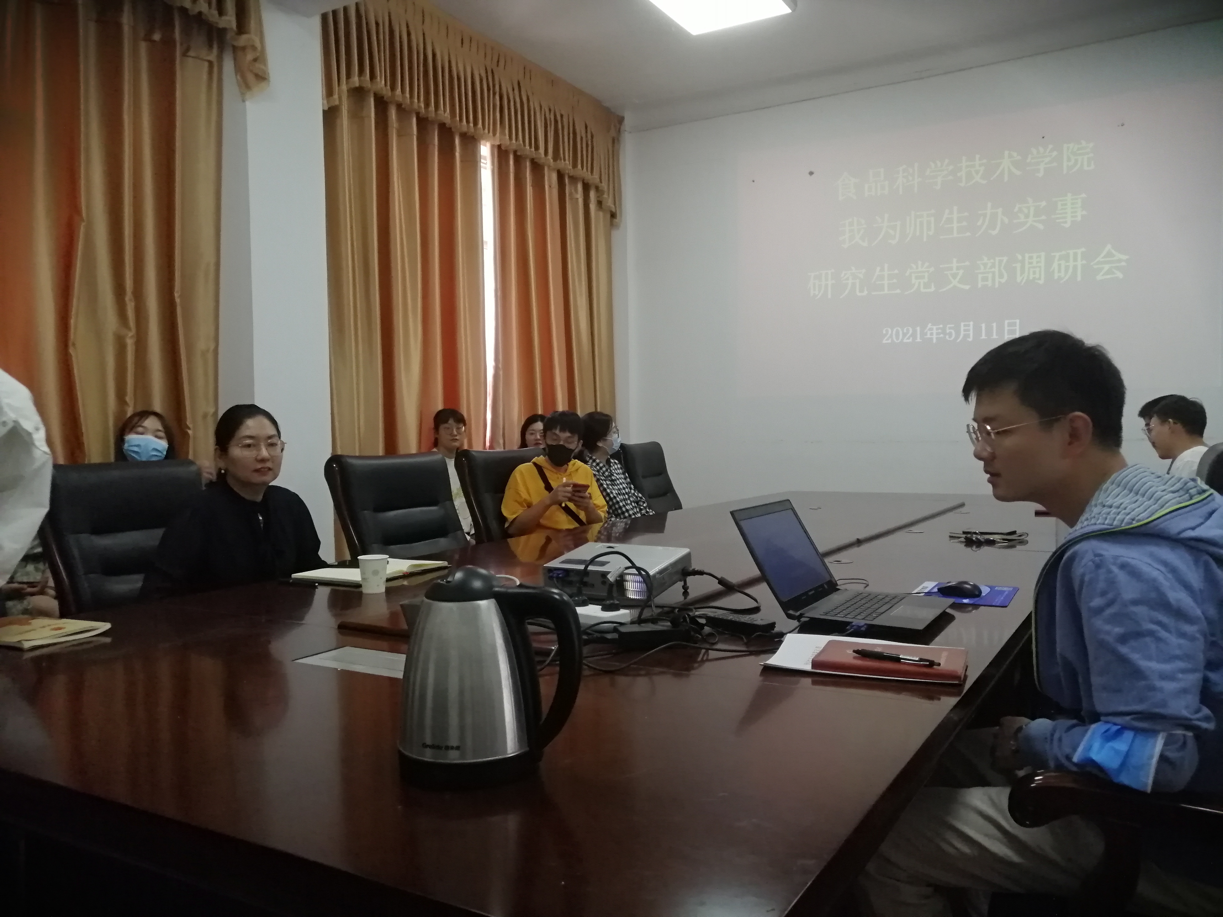 于文化路校区举办“我为师生办实事”研究生党支部调研会,特邀院党委书记赵改名、院党委副书记李蓓蓓出席会议,研究生畜产、速冻党支部全体党员参加会议。会议由院党委副书记李蓓蓓主持。