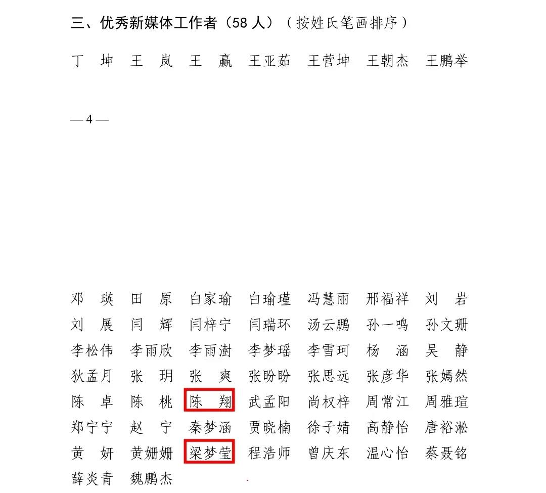 十佳新媒体平台、十佳短视频、优秀新媒体工作者、优秀新媒体作品的决定文件》(校党宣〔2021〕12 号)。院团委副书记陈翔、院新媒体主任梁梦莹荣获“优秀新媒体工作者”的荣誉称号,段雪珂等人作品《军训纪念册|你笑起来真好看》荣获一等奖,祁红丽等人作品《战“疫”必胜 | 百合小说