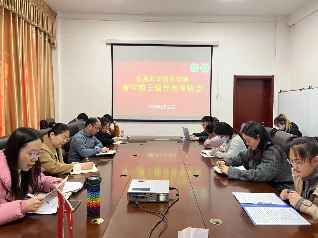 于文化路校区13号楼召开青年博士辅导员考核会。院党委副书记李蓓蓓,食品营养与健康系党支部书记高晓平,院团委书记路平,团委副书记陈翔,全体辅导员,教师和学生代表出席会议。