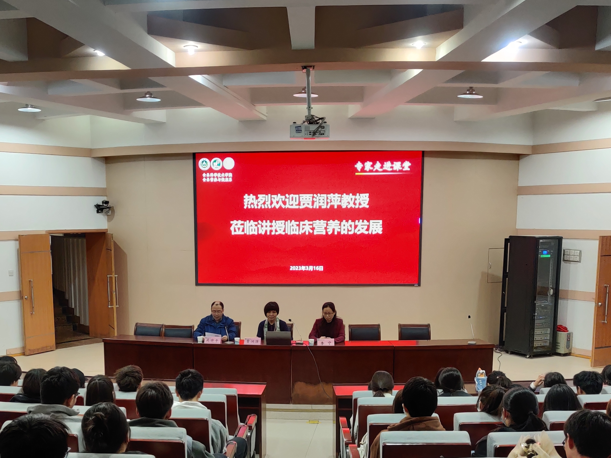 讲座主要围绕临床营养发展历程、医用膳食和特医食品、临床营养面临的新形势和新机遇三个方面的内容开展。首先,贾主任用三个故事,生动的介绍了临床营养的重要地位、临床营养的诊疗流程(营养筛查、评估、诊断和治疗)、营养治疗的途径以及临床营养发展历程,表示营养建设行动目前备受重视,临床营养发展进入历史“转型”期,已形成较完整的独立知识体系。此外,她用丰富的实例讲解了医用膳食种类和适用范围以及特医食品的兴起、种类、应用,特医食品与药品食品的差异等。最后,贾主任介绍了临床营养面临的新形势和新机遇,希望同学们重视食物、尊重食物,并勉励同学们食品营养专业大有可为,务必牢固树立专业思想,推进健康中国的建设发展。