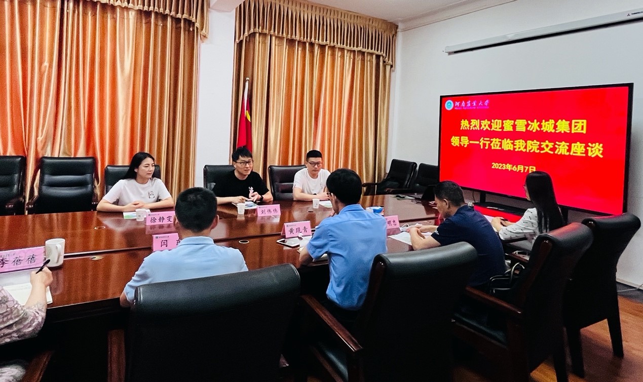 随后,蜜雪集团副总经理刘伟伟介绍了集团基本情况,讲述了企业在高校设立奖学金的意义与作用,并表达了集团与学院进一步深度合作的意愿。会议参会人员针对企业奖学金、科研人才培养、创业实践基地三个方面的工作进行了深入座谈和交流。