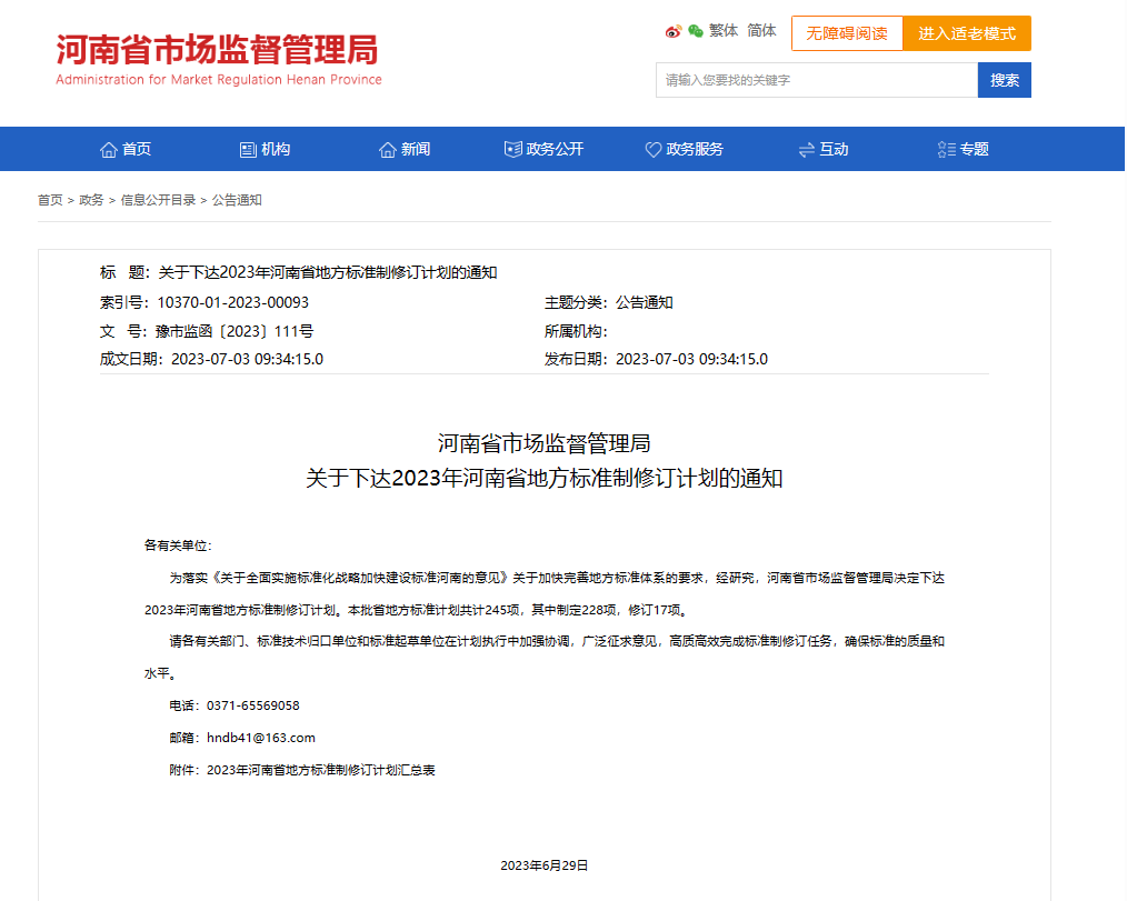 7月3日,为落实《关于全面实施标准化战略加快建设标准河南的意见》关于加快完善地方标准体系的要求,河南省市场监督管理局下达2023年河南省地方标准制修订计划。百合小说