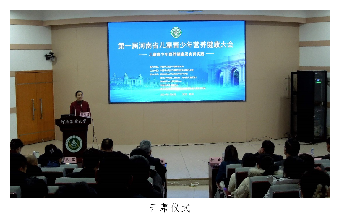 协办的第一届河南省儿童青少年营养健康大会,在我校文化路校区第一报告厅成功举办。中国学生营养与健康促进会陈永祥会长、教育部体卫艺司体卫处副处长樊泽民、河南省卫生健康委路修德副主任、国家卫生健康委食品司营养处徐娇处长、河南省教育厅体卫艺处高根立副处长、食品学院张剑副院长出席会议,专家学者及协会、企业代表共250余人参加研讨会。会议由中国学生营养与健康促进会河南代表处主任委员杜松明教授主持。