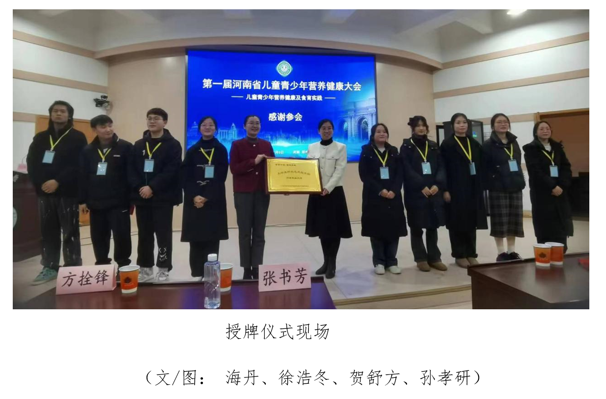 食品学院所开展的营养科技志愿活动给予高度的肯定,并代表中国学生营养与健康促进会河南代表处为我校授予食育中原 豫健未来“大学生科技志愿者服务团”牌子,预祝后续“校园营养万里行—河南站”相应工作能够科学、有效和可持续开展,并鼓励百合小说
