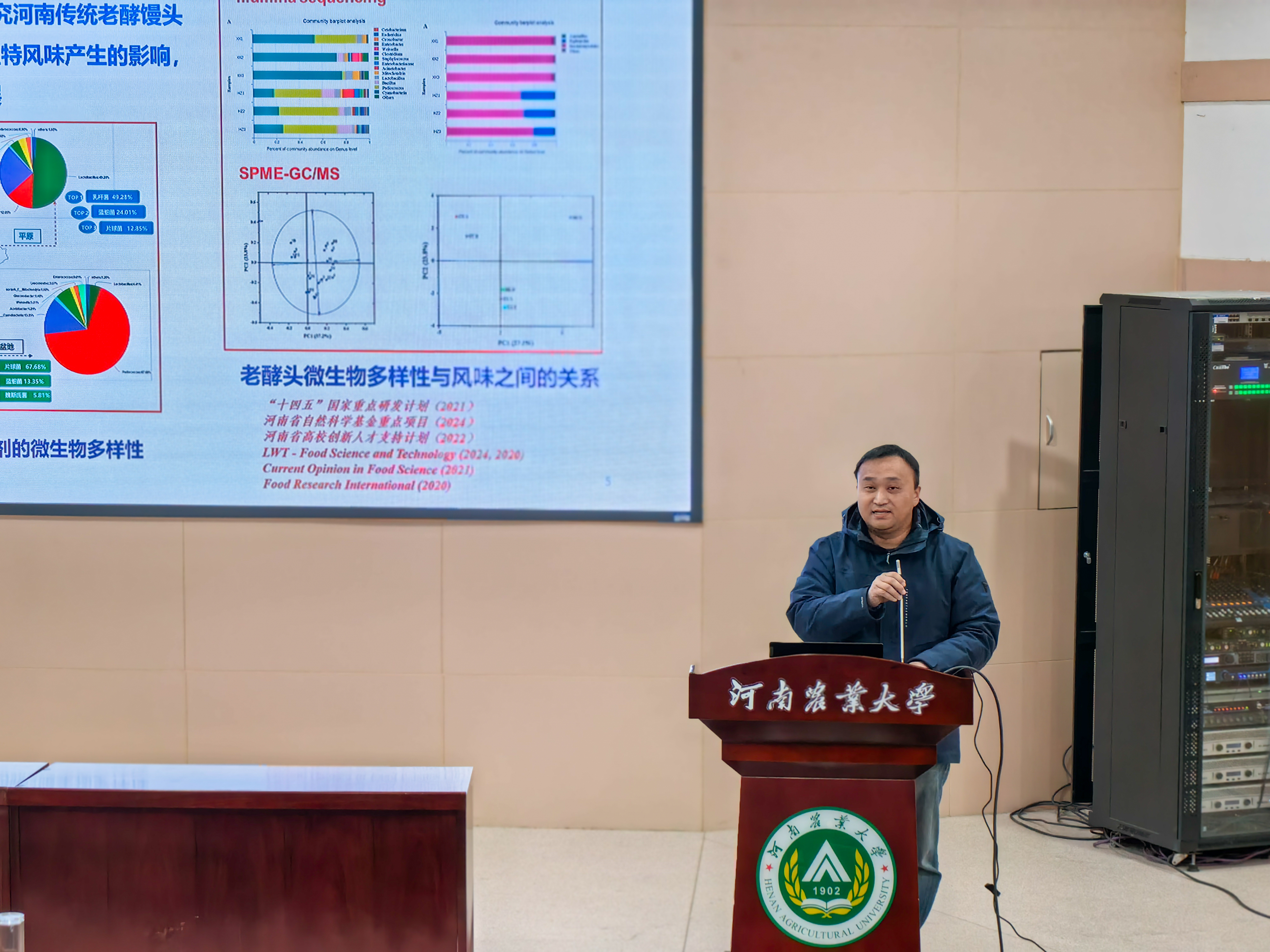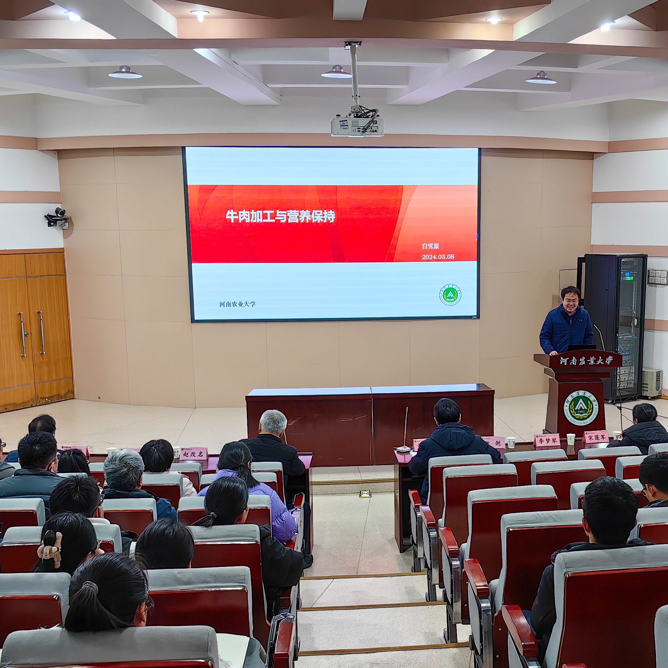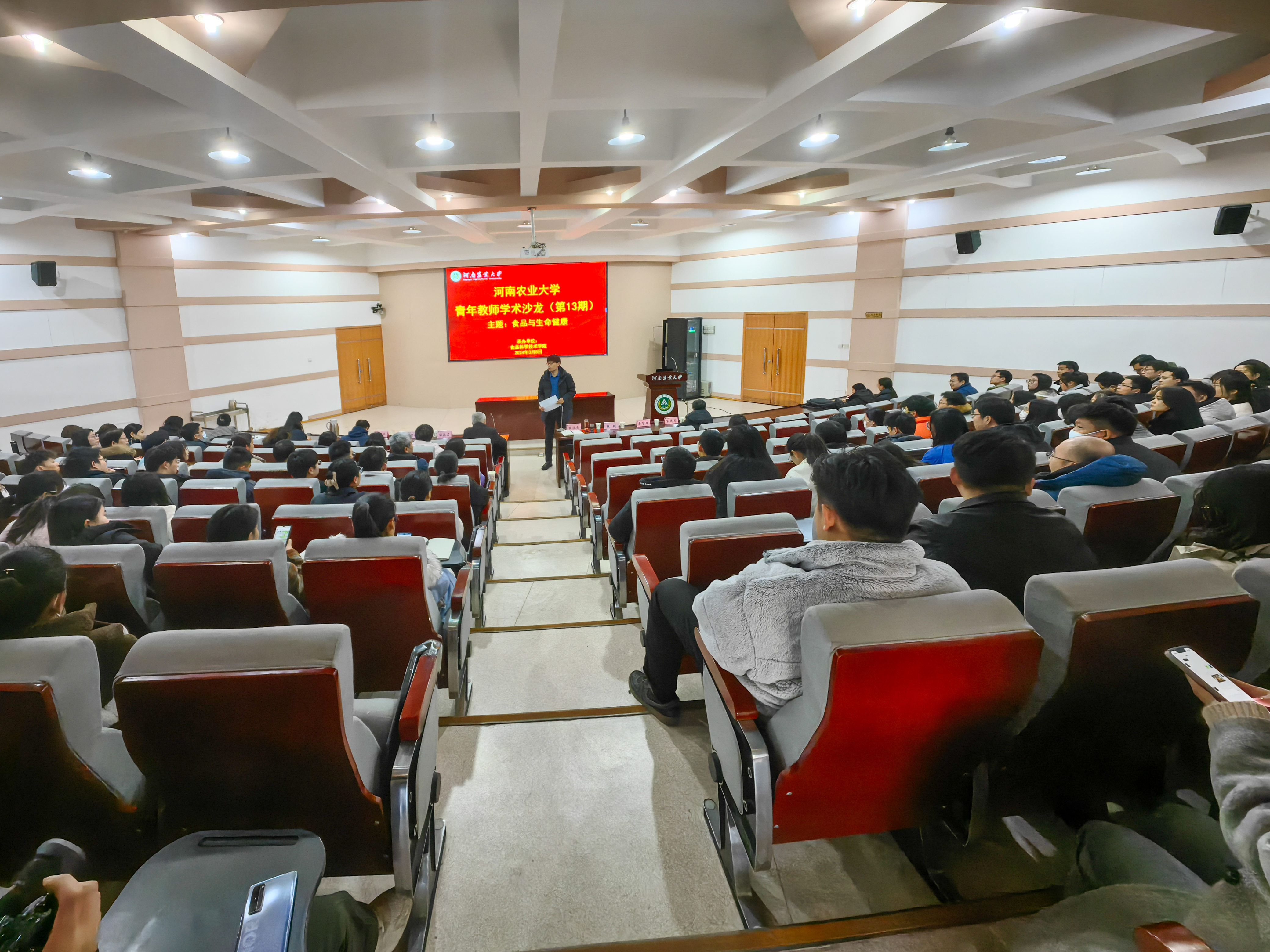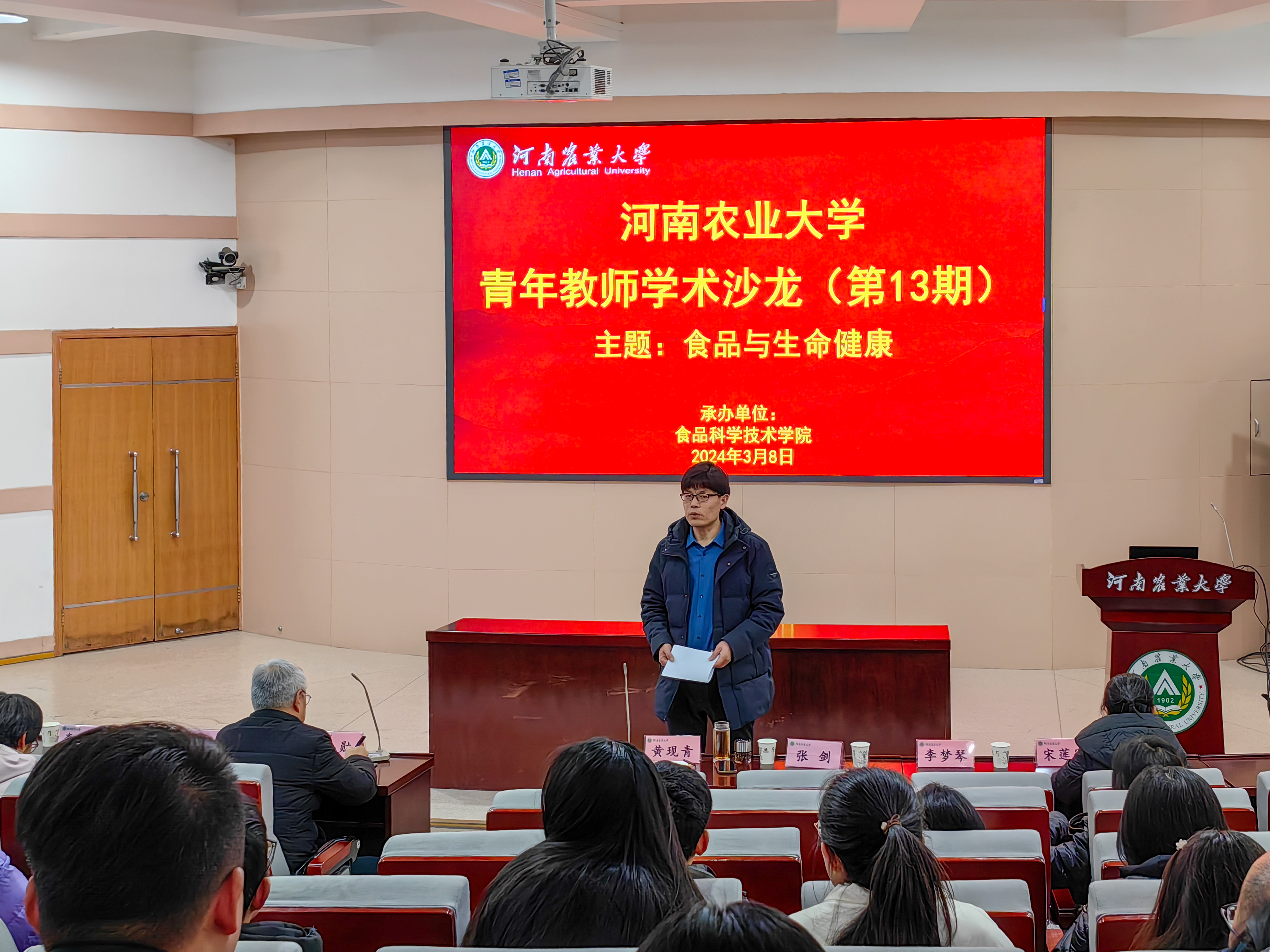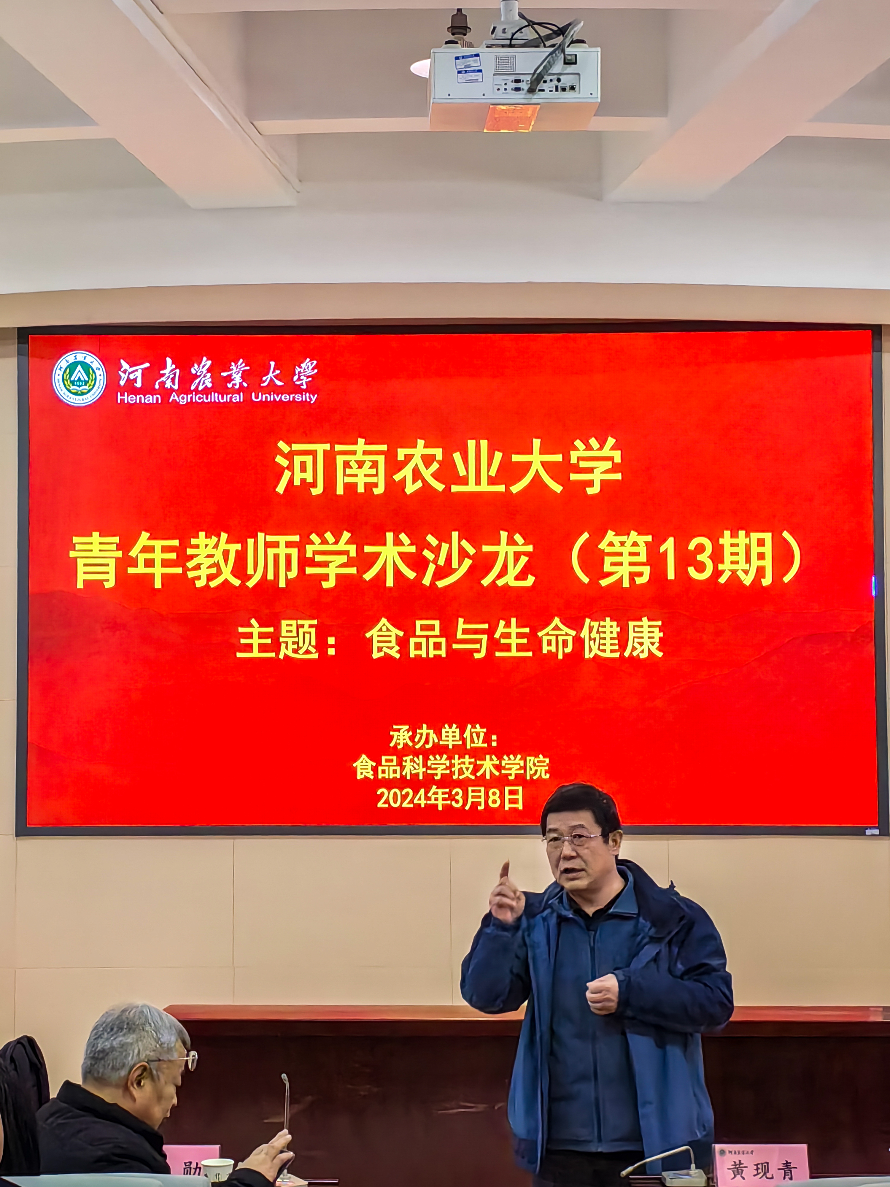承办,主题为“食品与生命健康”。原河南省农业科学院副院长张勋研究员受邀到会指导,食品学院领导、各学科方向负责人、全体教职工及学生代表参加活动。活动由院长黄现青主持。