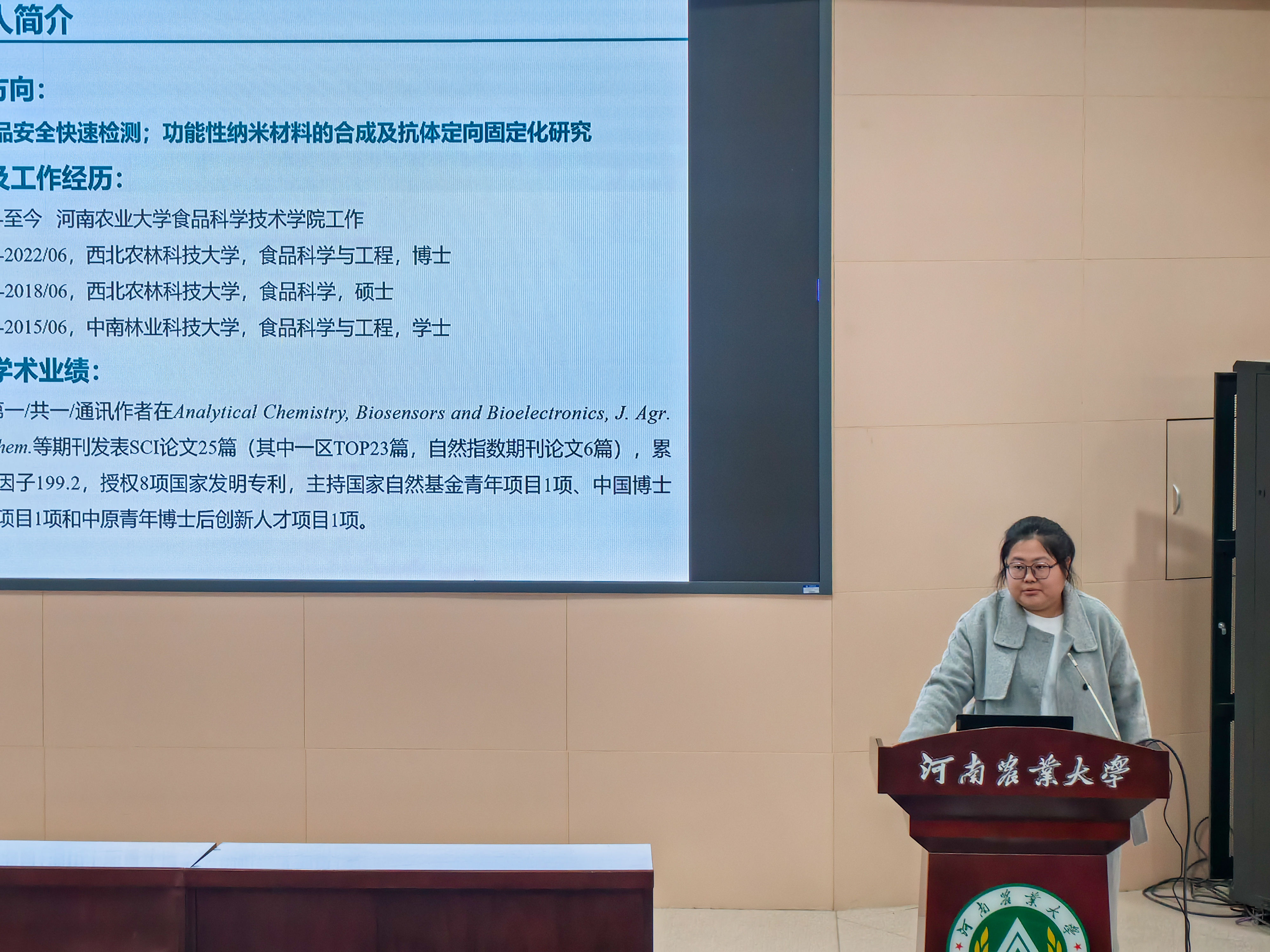 与会专家张勋首先做了校企如何紧密合作的报告,随后食品学院青年教师白雪原、李苗云、索标、杨勇、补彤、马燕分别以“牛肉的加工与营养改善”“肉品加工与营养健康”“探索传统发酵面制食品的奥秘——从理论到应用”“预制米面及调制食品发展与创新”“基于多元探针增敏的食品安全危害因子免疫层析检测方法研究”“植物源多酚的高效化利用关键技术探究”为题分享了各自科学研究进展。