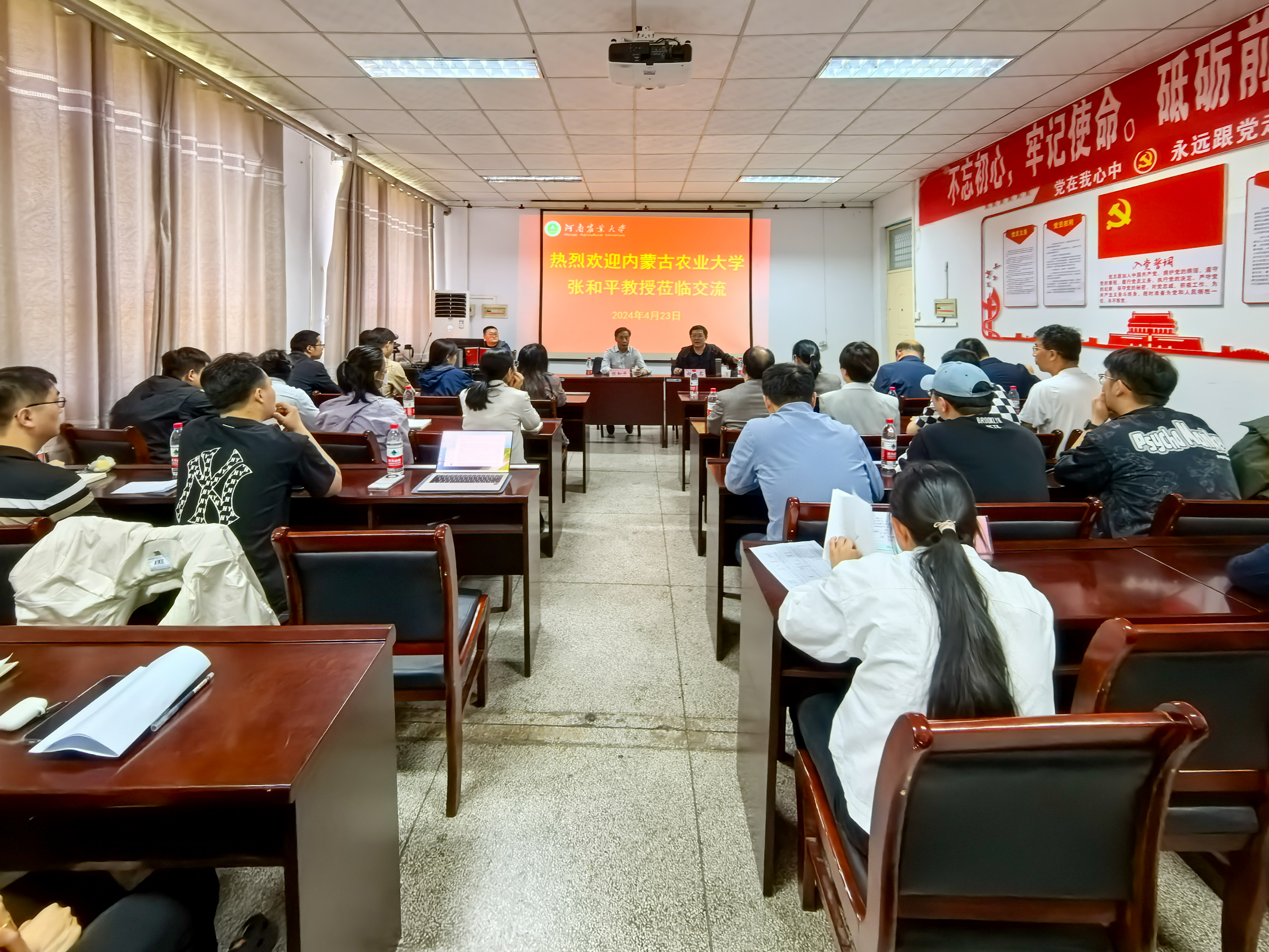 赵书记对张教授一行的到来表示热烈欢迎,并介绍了学院的学科建设、科学研究等基本情况。张教授向与会人员介绍了内蒙古农业大学食品科学与工程学院的师资力量、办学特色、相关实验团队和研究平台,随后做了题为“乳酸菌资源的开发利用”的报告并分享了自己工作30余年专注从事乳酸菌相关研究的切身体会,提出了基于人工智能筛选发酵剂的发展思路。随后,张教授一一回答了教师和学生的提问,并指出国内科研发展要致力于实现科技自强,打破“国外产品就是好”的固化思维,突破国外科技壁垒,展现出强大的自主创新能力和科技实力。