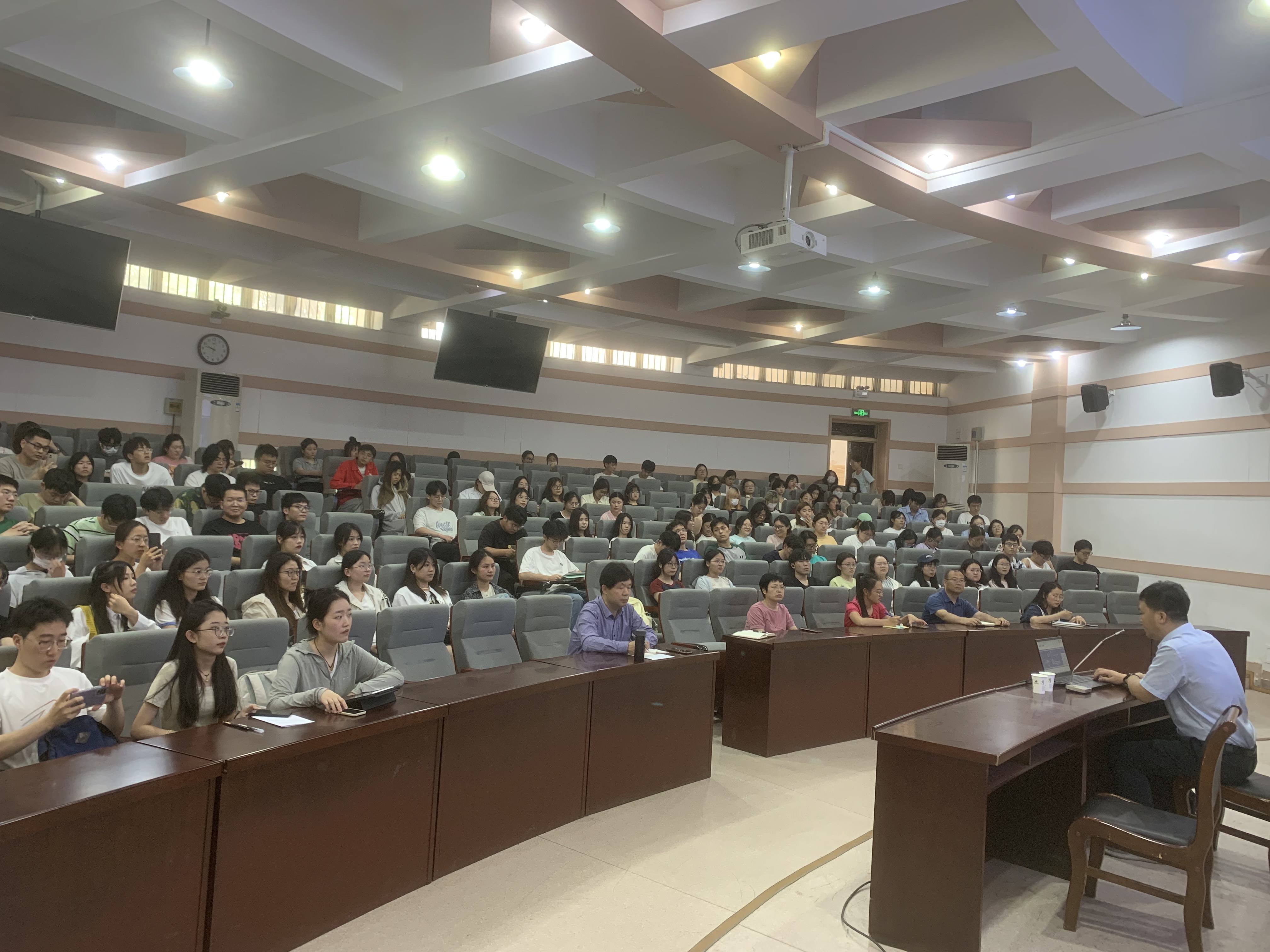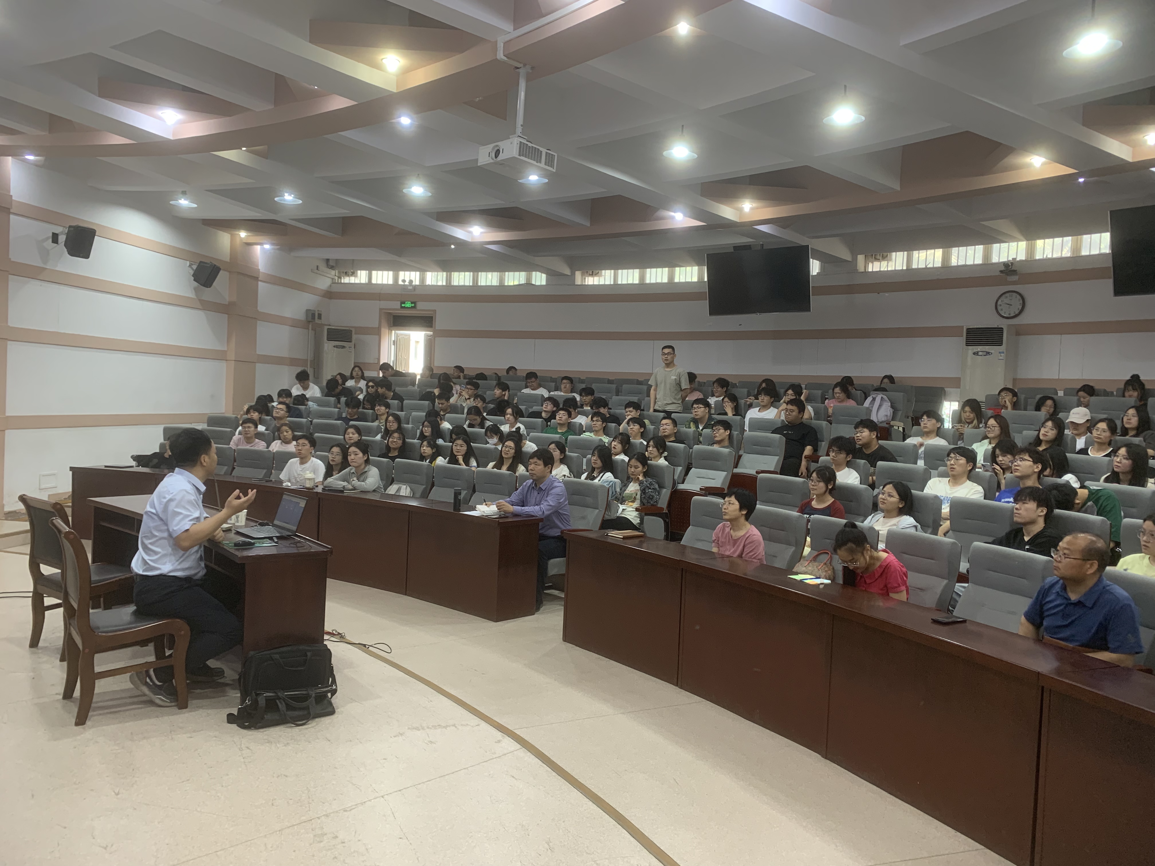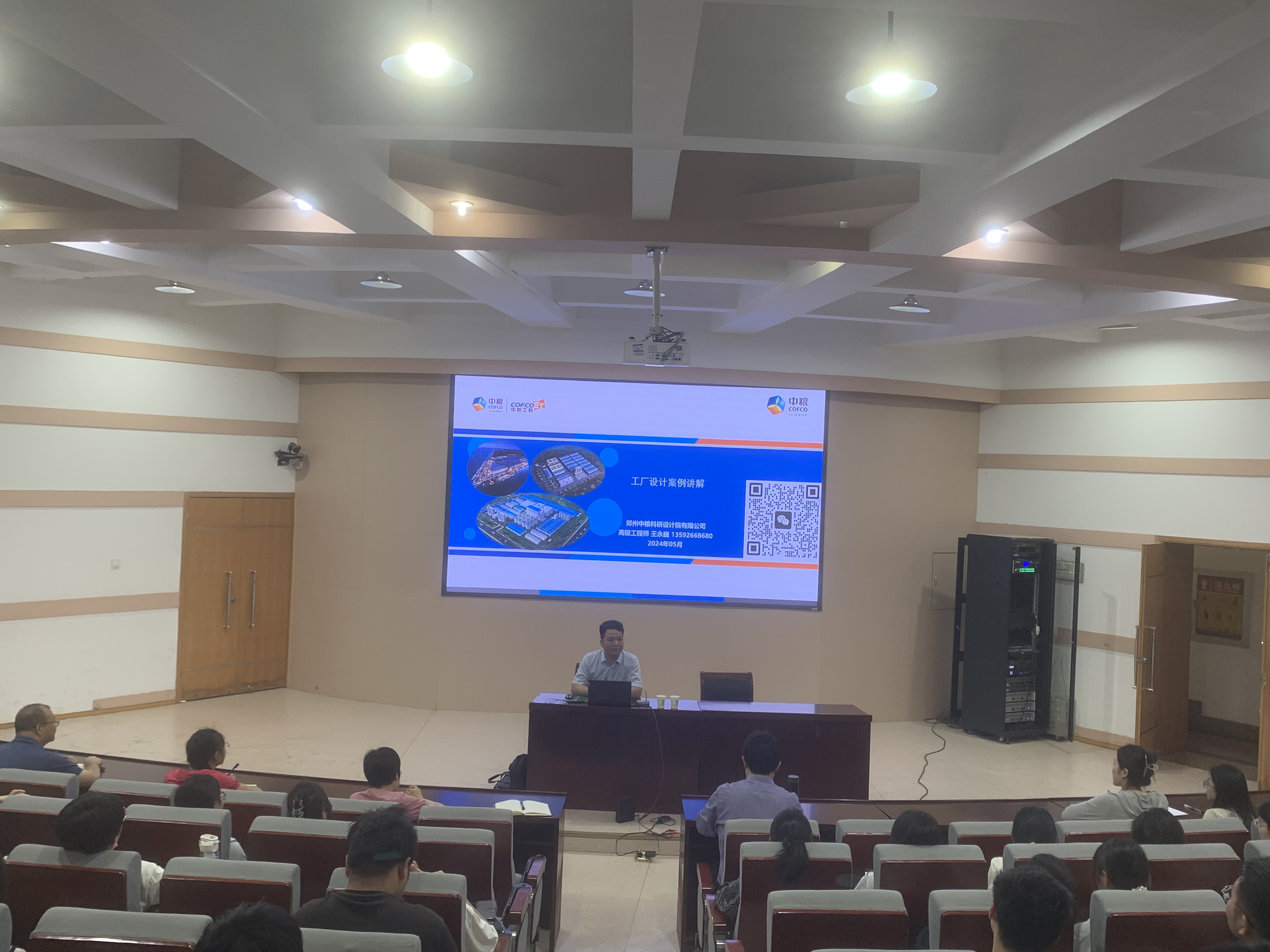 特邀食品工厂设计与环境保护课程企业合作导师郑州中粮设计研究院高级工程师王永巍于文化路校区300人报告厅为师生开展食品工厂设计案例讲解。食品学院教学院长张剑,食品工厂设计与环境保护课程组教师范会平、王小鹏、马燕、程李琳、王银平以及食品学院其他任课教师出席此次讲解会,会议由教学院长张剑主持。