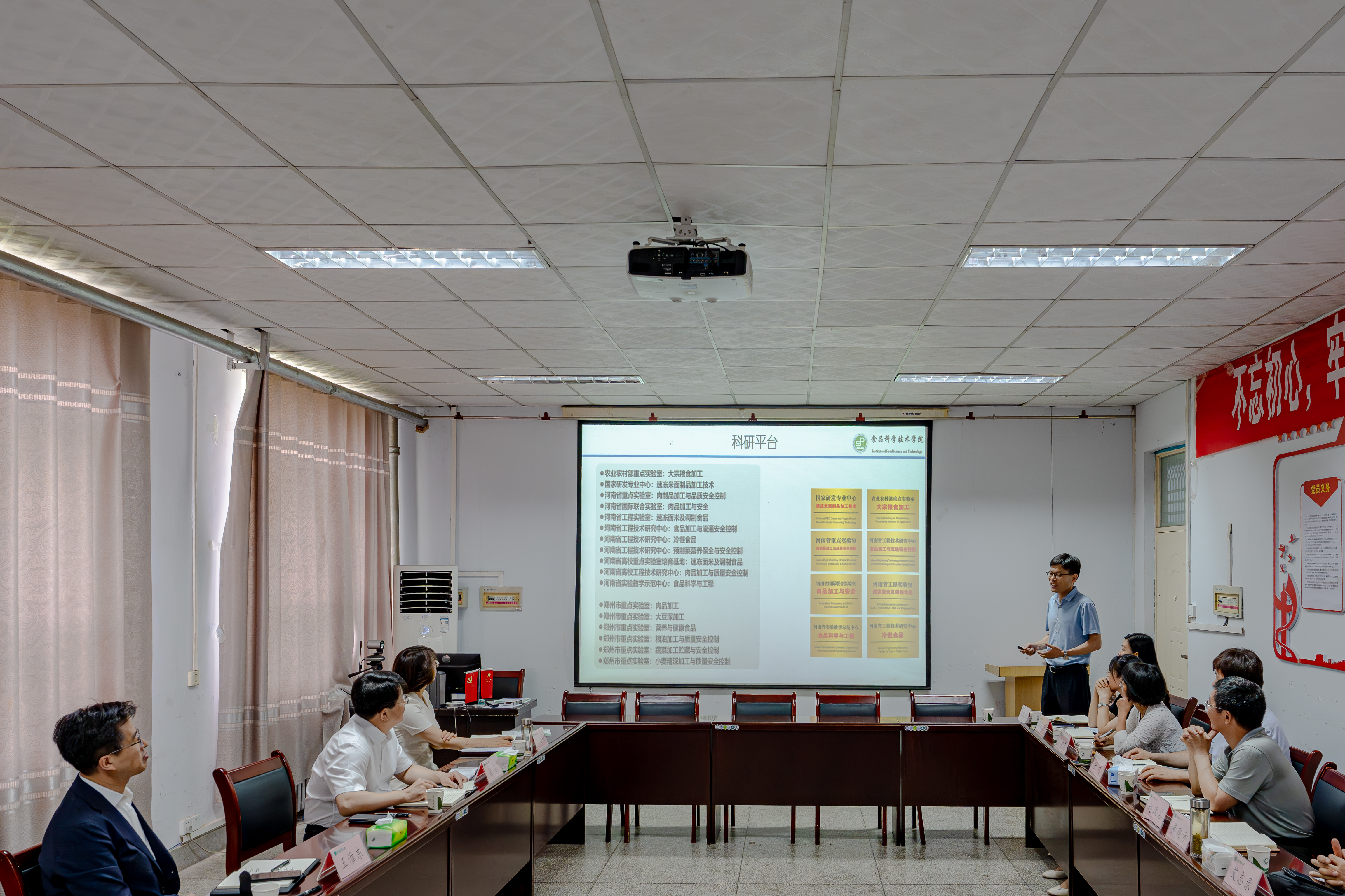 院长黄现青做了学院建设与发展情况汇报,详细讲解了学院的发展历史、机构设置、师资队伍建设、学科与学位点建设、专业与课程建设、实验室建设、科研团队和平台建设以及科学研究与社会服务工作,同时梳理了学院发展遇到的瓶颈及发展规划。