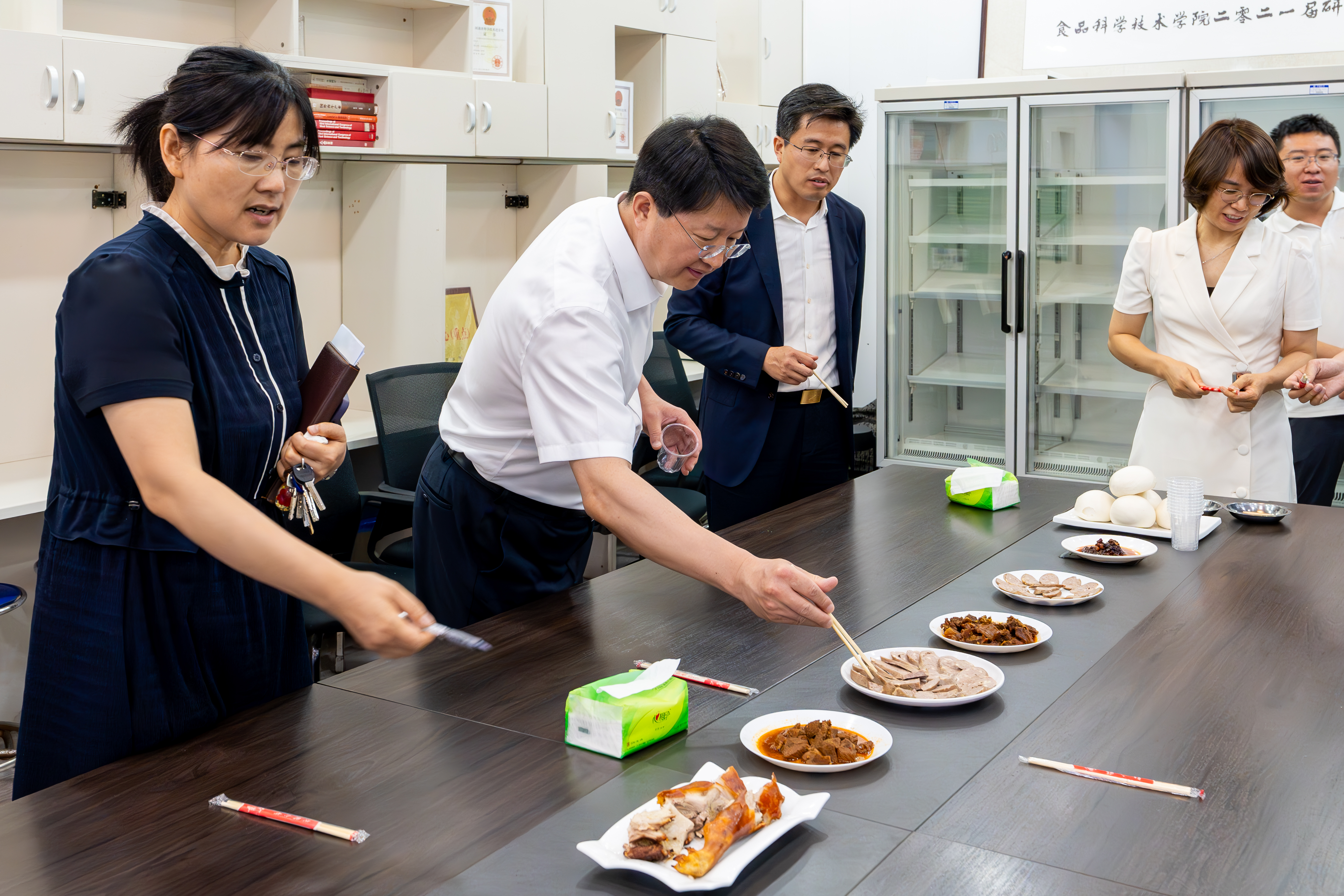 裴强听取了相关汇报,充分肯定了食品学院的各项工作和对学校发展做出的贡献。随后他对参会人员提出了几点意见和建议:一是专业和学科发展要积极融入国家发展战略,了解社会和人民的需求,及时调整方向;在学院的发展过程中要妥善处理学院和科研团队的关系、科研团队和教工个人的关系,把团队建设好,实现更大的突破。学院和科研团队都要发挥主观能动性,了解社会各个方面的信息,寻求各个地方的合作意向,建立良好的合作发展关系,在实现院系良好发展的同时更好地为国家重大战略服务、为社会和人民服务。二是要紧抓党建工作,高质量的党建引领社会和事业高质量的发展,通过党建可以保证一个风清气正的良好发展环境,通过党的建设也可以提振全体教职工的精气神,全心全意地投入到事业中。其次是党建工作一定要做实,在学院中如何加强师德师风建设就是党建需要面对的一些具体情况和问题,值得所有教职人员深入思考和落实。三是要重视纪律工作,要牢记政治红线,熟悉政治纪律、组织纪律、廉洁纪律、群众纪律、工作纪律、生活纪律,学思用贯通,知行合一。要确保办学资源的权力都在进一步的约束下,保证大家讨论和提议的权利,同时要避免不作为和乱作为。领导干部要习惯在监督下工作和生活,净化朋友圈、生活圈,杜绝各种不正之风,接受党内和群众的监督。