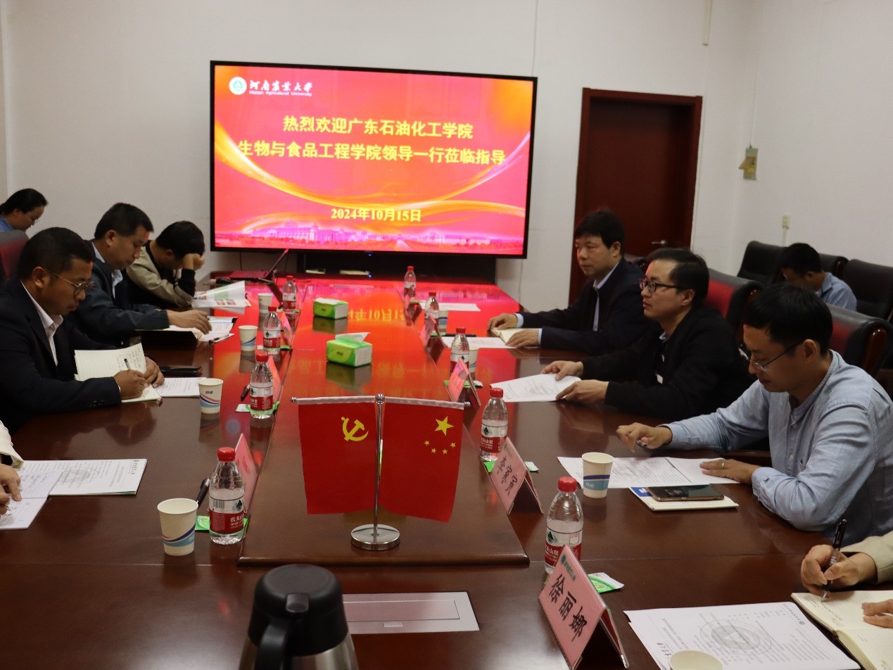 在课程建设、过程化考核、学生创新能力培养、基层教学组织建设、青年教师培养和实践教学等方面的工作经验。王春院长对广东石油化工学院生物与食品工程学院的办学历史、学科专业、招生就业、科学研究、人才培养和专业认证等基本情况进行了详细介绍。随后,双方就工程认证、学科建设、过程考核、常态化管理、产教融合和研究生就业等问题进行了深入交流和探讨。座谈会结束后,王春院长一行参观了学院本科教学实验室和研究生科研实验室。