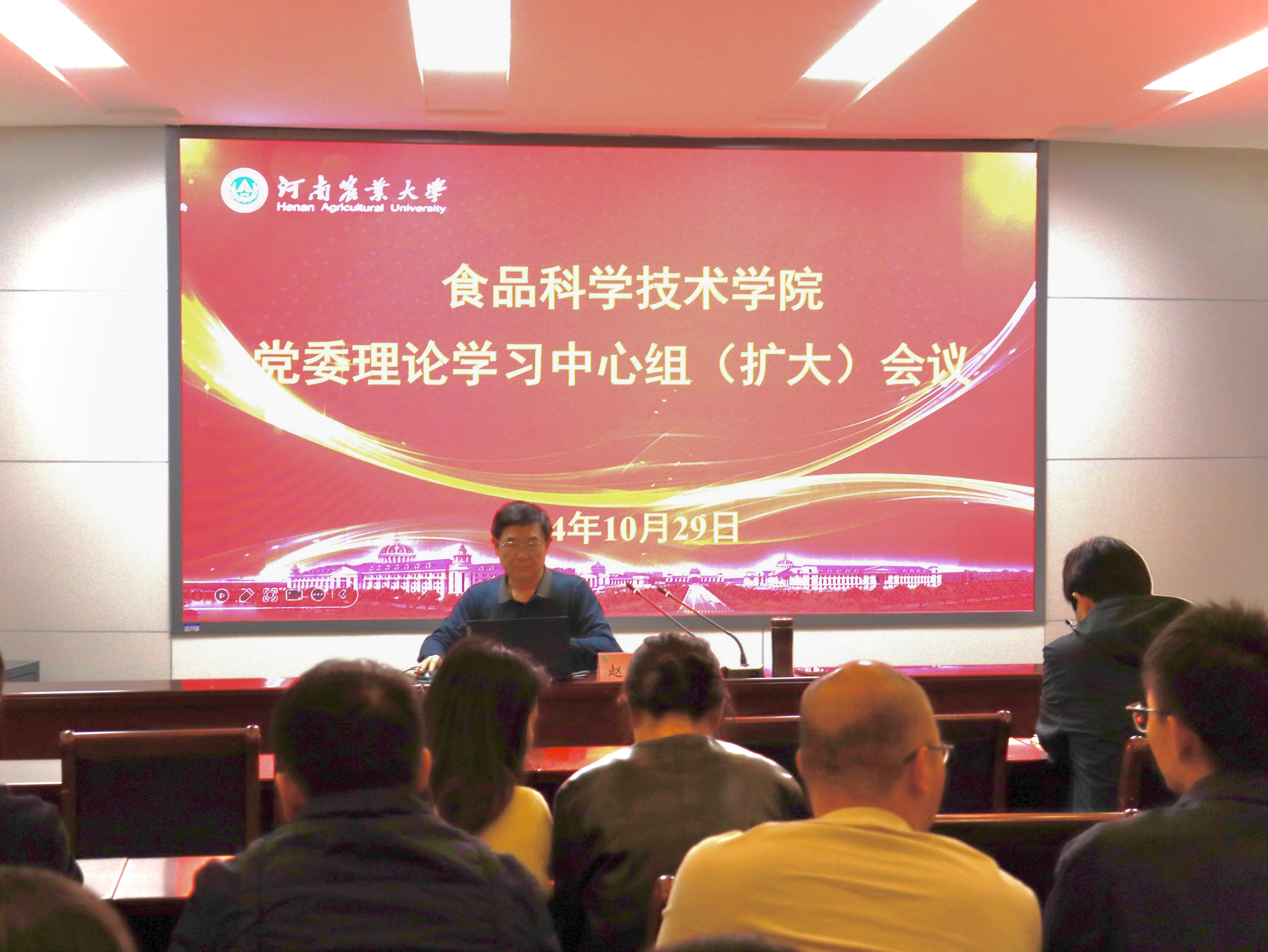在文化路校区报告厅召开党委理论学习中心组(扩大)会议,会议由学院党委书记赵改名主持,全体教职工、学生党支部书记、委员参加。