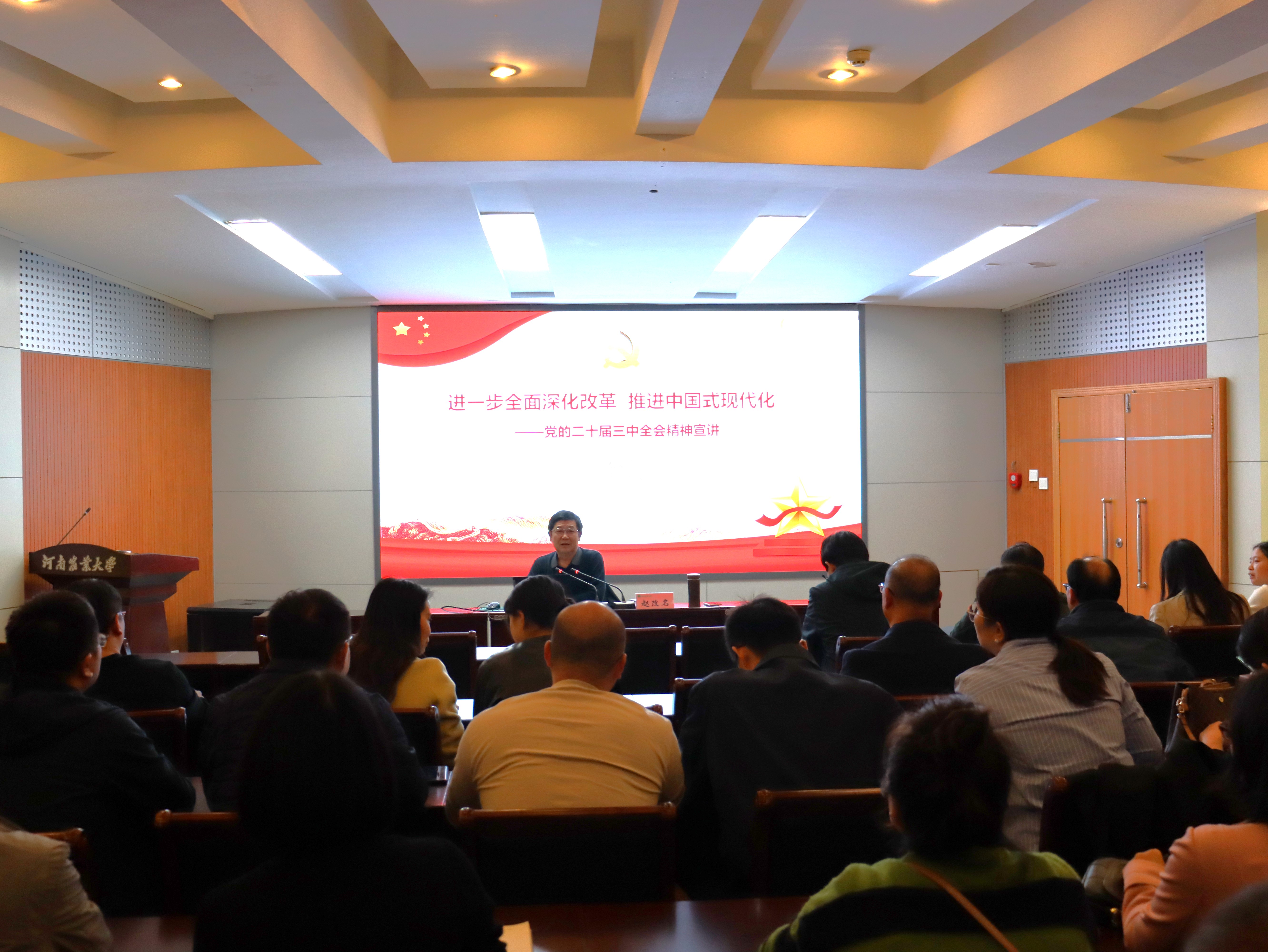 最后,赵改名强调,要深刻学习领会习近平总书记关于全面深化改革的一系列新思想、新观点、新论断,自觉用以指导进一步全面深化改革、推进中国式现代化建设河南实践,奋力谱写学校高质量发展新篇章。