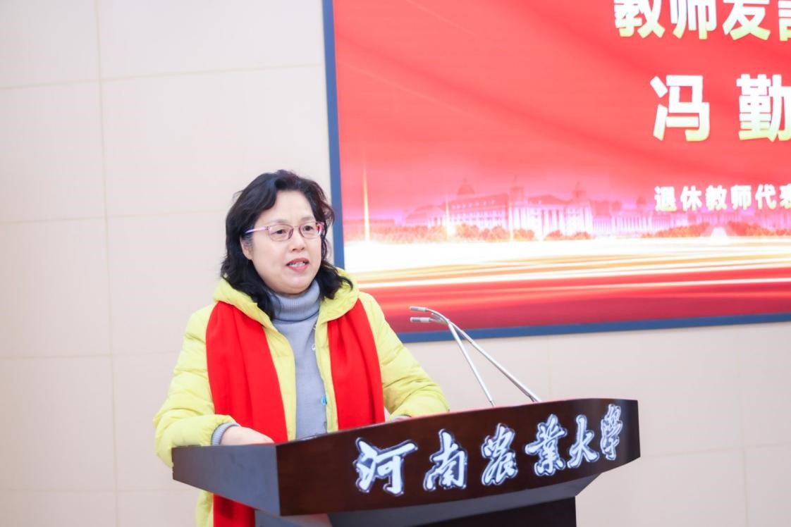 退休教师代表冯勤始终心系学院,对学院二十年来取得的成就,感到骄傲与自豪。