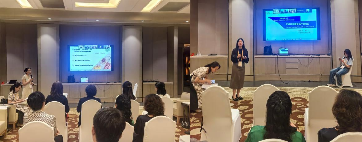 展会特设的第一届国际药食同源学术报告会上,法国、瑞士、中国等国家药食同源领域的专家分别进行报告,李宁教授与海丹副教授分享了学院在药食同源领域的科研成果。报告聚焦功能成分提取技术、传统食材现代化应用及健康产品开发体系,强调了基础研究向产业转化的重要性,为行业提供了从理论到实践的全链条解决方案。