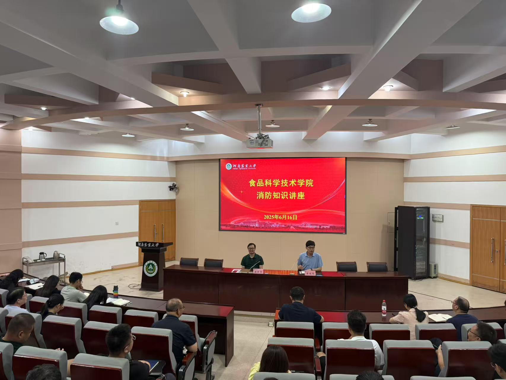 紧扣第24个全国安全生产月“人人讲安全、个个会应急——查找身边安全隐患”主题,组织召开消防安全知识讲座暨全体教职工大会,着力提升全员安全素养,夯实学院高质量发展根基。会议由副院长谢新华主持,全体教职工参会。