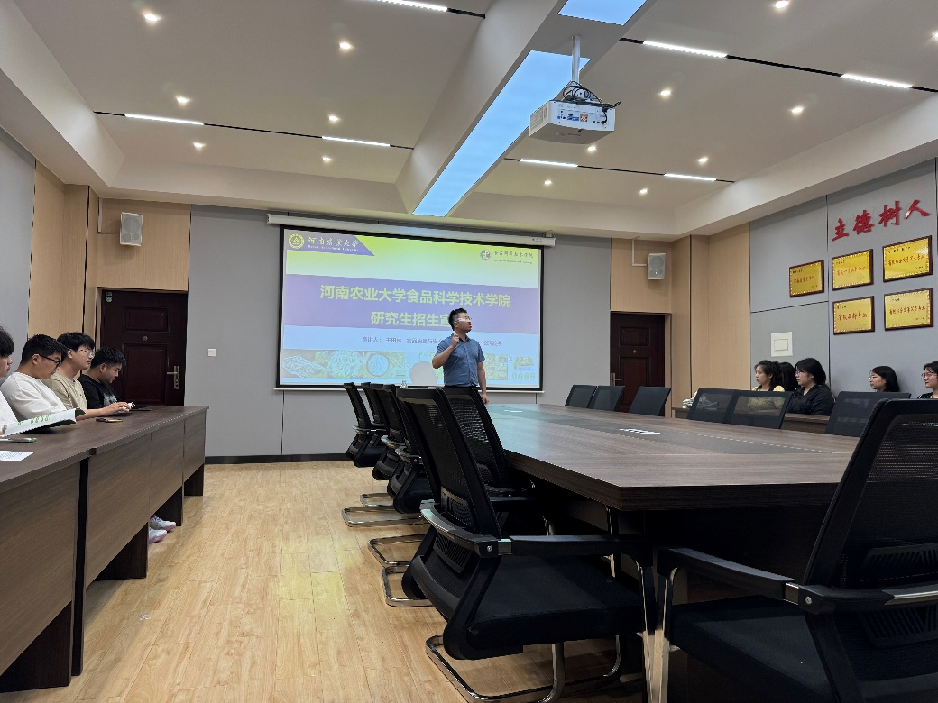 食品质量与安全系党支部书记王田林老师受邀到信阳学院理工学院进行2026年硕士研究生招生宣传活动。信阳学院理工学院22级本科生参加了本次宣讲会。