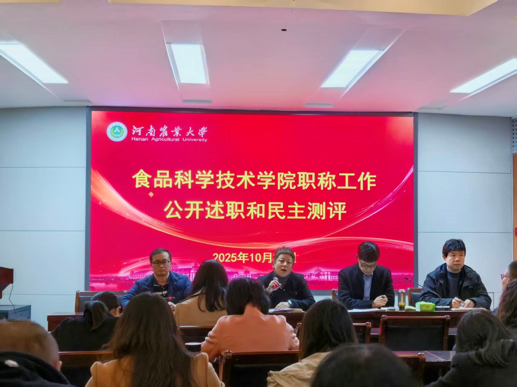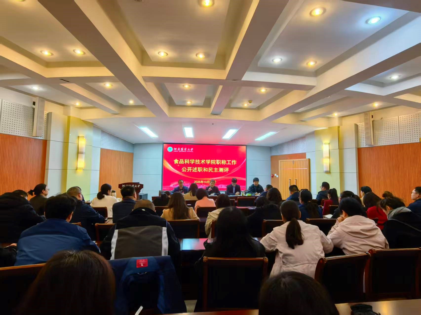 在文化路校区100人报告厅召开了2025年度高校教师(实验人员)职称工作公开述职和民主测评会。院领导班子成员及全体教职工参加了此次会议,会议由院长黄现青主持。