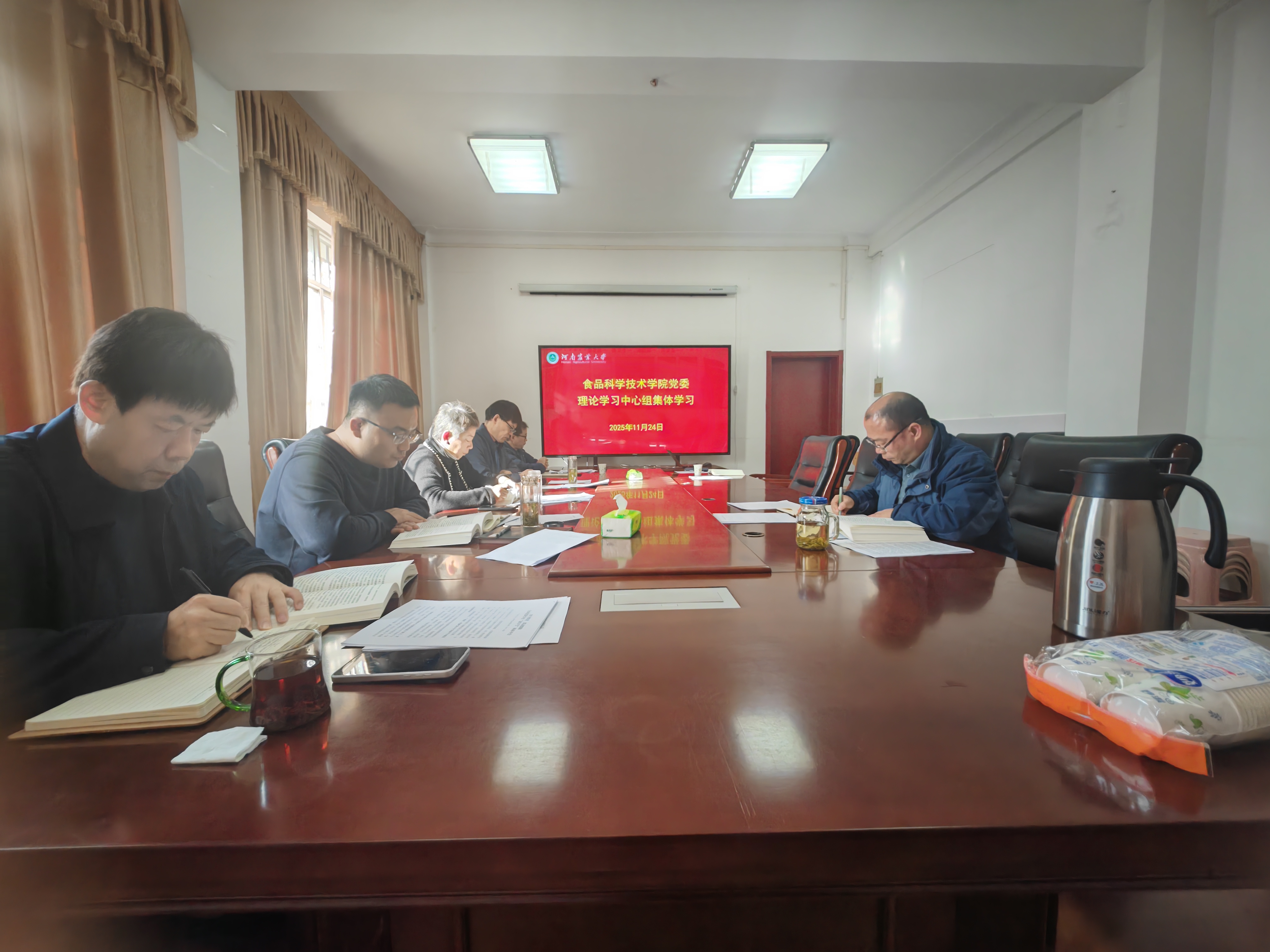 举行党委理论学习中心组集体学习,专题学习《习近平谈治国理政》第五卷中关于发展新时代中国特色社会主义文化的重要论述和校党委关于建强“国字号”科研平台的会议精神。院党委书记吴旭静主持会议并讲话。