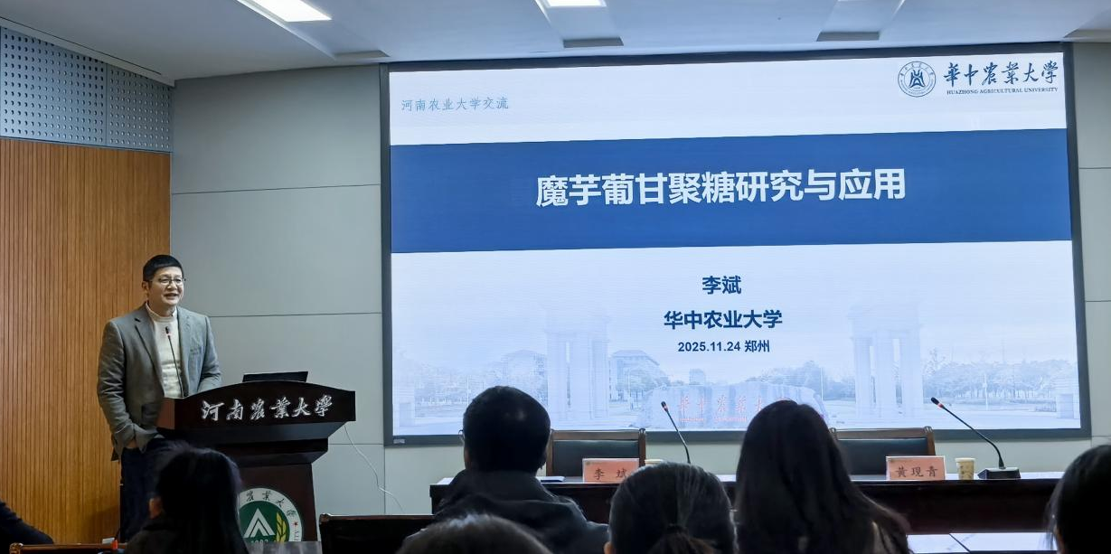 作题为《魔芋葡甘聚糖研究与应用》的专题报告。报告在文化路校区100人报告厅举行,由院长黄现青主持,学院教职工及2024级研究生现场参会。