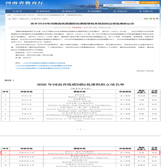 《食品工厂设计与环境保护》课程凭借其扎实的教学基础、创新的教学模式和显著的育人成效,成功获批2026年河南省优质国际化课程项目。