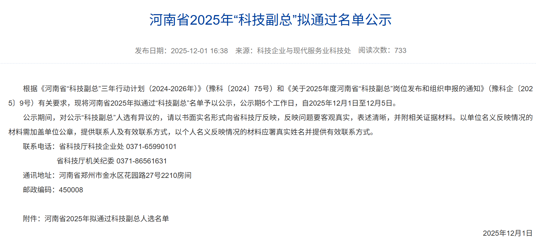 认真组织开展了河南省2025年“科技副总”申报工作。经教师自主申报、属地科技管理部门初审合格后,通过系统推送至省科技厅。经省科技厅会同有关部门组织评审,全省共遴选确定“科技副总”1518人,其中我校共有130名教师入选。百合小说