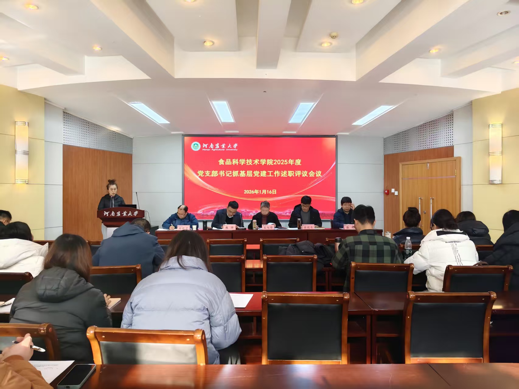 于文化路校区大礼堂100人报告厅召开2025年度党支部书记抓基层党建工作述职评议会议。学院党委委员、班子成员,中层干部,各党支部书记参加会议。院党委书记吴旭静主持会议。
