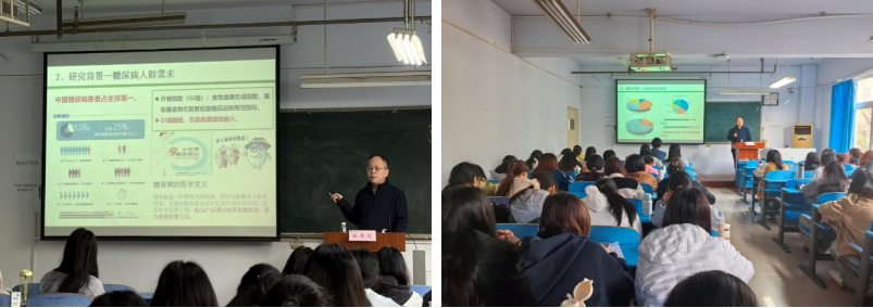 张康逸研究员立足国家粮食安全与国民健康两大核心需求,阐释了小麦绿色加工技术的时代价值与现实意义。结合民生热点深入剖析主食营养升级与功能化创新的迫切性,明确以精准营养为导向的小麦加工技术,既是筑牢粮食安全底线的重要支撑,也是落地健康中国战略、赋能食品产业高质量发展的关键路径。他详细介绍团队在抗性淀粉制备与改性领域的深耕成果,系统讲解了多项创新技术,通过精准调控淀粉结构与消化特性,为研发低升糖、高适配全人群的营养面制品夯实技术根基;同时分享小麦功能肽制备等前沿突破,全面展现小麦蛋白高值化利用、特色功能食品开发的创新方向与广阔应用前景。互动交流环节同学们踊跃提问,张康逸研究员耐心答疑,结合科研与产业经验,为大家的科研方向与成长发展给出务实可行的建议。