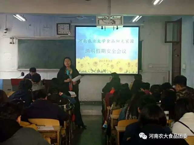在文化路校区三号楼501教室召开了清明假期安全工作会议。院团委书记李蓓蓓、院团委副书记杨光、院党委组织员张世昌、院辅导员孟子晴出席会议,学院各班班长、支书参加会议。