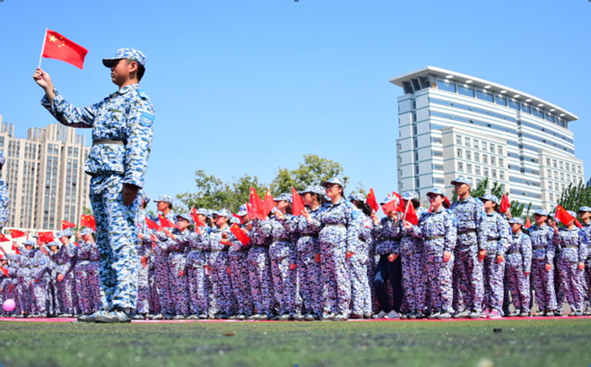 活动现场隆重庄严,由2016级全体新生组成的“爱我中国”四个大字在300平方米的喷绘背景辉映下显得格外瞩目。庄严的国旗班伴随着同学们嘹亮的国歌声迈着整齐有力的步伐走向场地中央,全体学生挥舞着鲜艳的五星红旗为祖国歌唱,为祖国生日献礼,祈祷我们的祖国更加繁荣富强。