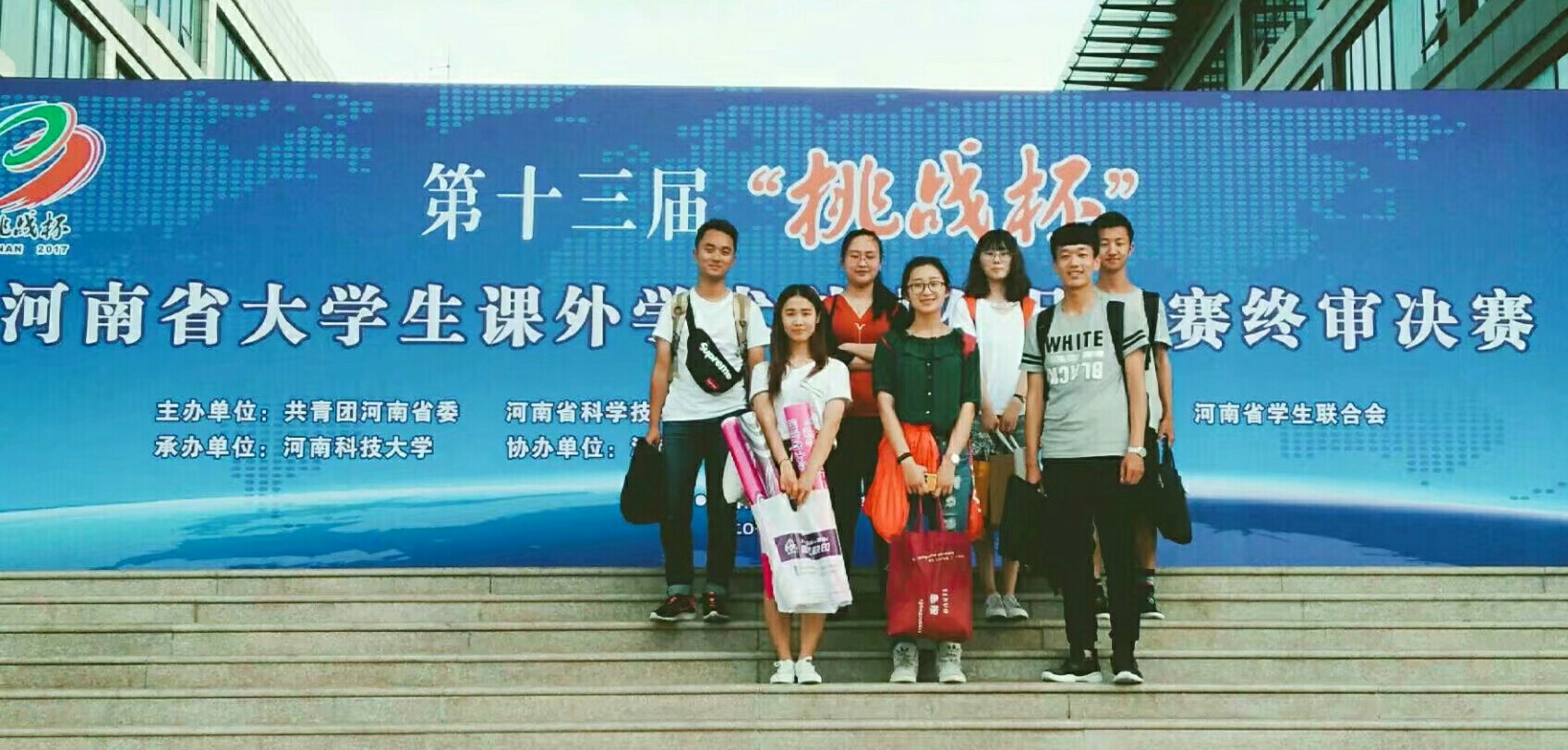 两支参赛团队赴河南科技大学开元校区参加第十三届“挑战杯”河南省大学生课外学术科技作品竞赛终审决赛。本次参赛由学院辅导员孟子晴带队,8名学生参加终审答辩。